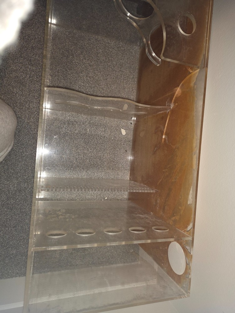 The Aquarium three-chamber sump is a 28-gallon aquarium tank designed by Precision Marine Systems. This rectangular sump tank is made of acrylic material and can hold up to 28 gallons of water. It is suitable for all water types and measures 29.25 inches in length, 14 inches in width, and 15.75 inches in height. This sump tank is perfect for fish and aquarium enthusiasts looking for a reliable and spacious tank to house their aquatic pets. Please note there is a crack on the back wall that should be repairable. Unit comes as is, as-seen in pictures with no additional addons. I will ship via FedEx and have them prepare the best method of delivery. Please let me know if you have any questions