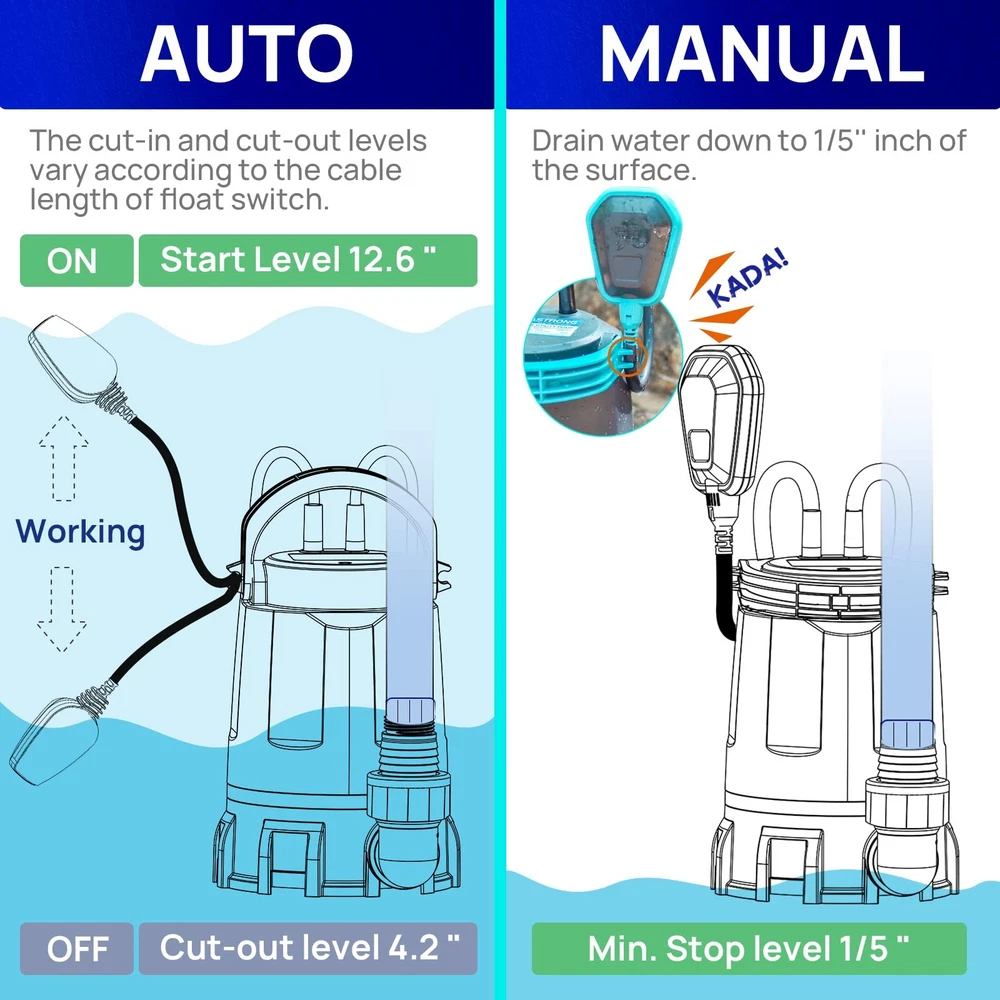 Aquastrong 1/2 HP Utility Pump 3159 GPH Submersible Water Pump with Float Switch, Draining Flooded Basement, Pool, Hot Tub, Pond, Garden Irrigation, 19ft Cord