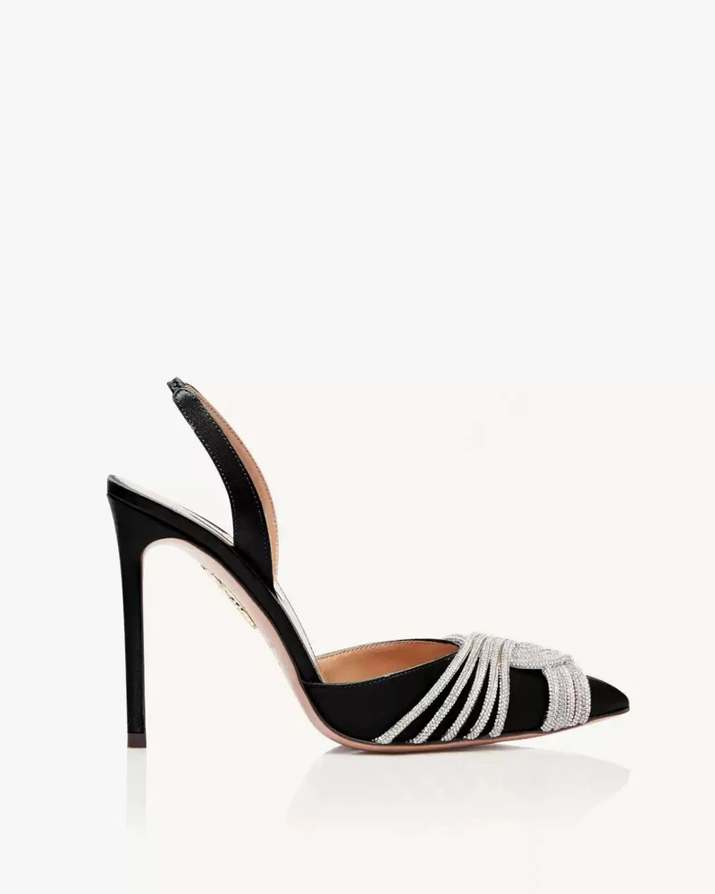 These Aquazzura-inspired heels are absolutely stunning! The sleek satin finish and sharp pointed toe give them such a luxurious, elegant look. They fit true to size and are surprisingly comfortable for a high heel—perfect for nights out or special occasions. The black leather upper is soft yet structured, making them both stylish and durable. Super fast shipping and easy transaction—definitely worth every penny! Would buy again in a heartbeat.