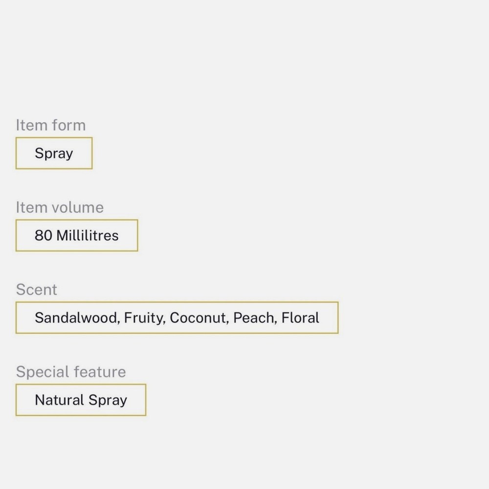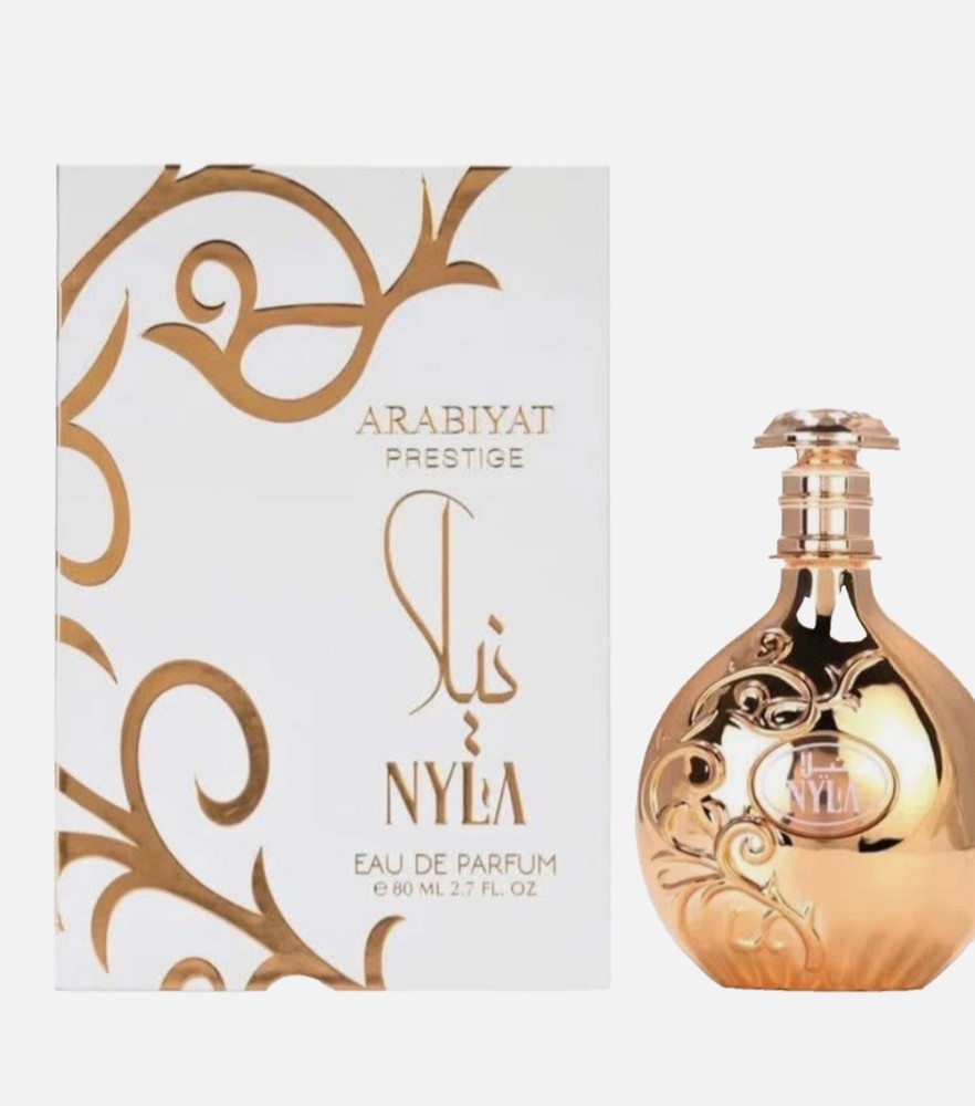 Discover Arabiyat Prestige Nyla Eau de Parfum (80ml) – a luxurious unisex fragrance blending fruity, floral, and woody sandalwood notes. Long-lasting, elegant, and crafted in the UAE. Product Description 🌟 Overview Indulge in the captivating allure of Nyla Eau de Parfum by Arabiyat Prestige, a luxurious fragrance crafted in the UAE. Designed for both men and women, this unisex perfume offers a perfect balance of fruity, floral, and woody notes that create a sophisticated and long-lasting aroma. ✨ Key Features Item Form: Spray Volume: 80 ml Special Feature: Natural Spray Fragrance Type: Eau de Parfum (EDP) Target Audience: Women & Men (Unisex) Manufacturer: My Perfumes (UAE) 🌸 Fragrance Notes Top Notes: Fruity Accord, Coconut, Peach Nectar Heart Notes: Floral Accord, Tiaré Blossoms Base Notes: Sandalwood, Heliotrope Blossoms 🌹 Why You’ll Love It Luxurious & Sophisticated – An elegant blend of fruity sweetness, exotic flowers, and smooth sandalwood. Elegant Bottle Design – Presented in a stunning rose-gold bottle with ornate arabesque engravings. Long-Lasting Performance – Eau de Parfum concentration for all-day freshness. Perfect Gift – A refined fragrance suitable for any occasion. 🎁 Ideal For Daily wear, special occasions, or as a thoughtful gift for loved ones. ✅ Directions Apply 2–3 sprays on pulse points (wrists, neck, behind the ears) for a lasting effect. ✅ Safety Warning For external use only. Avoid contact with eyes. Keep away from open flames and direct heat sources.