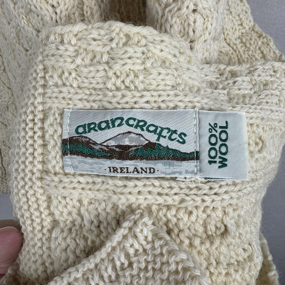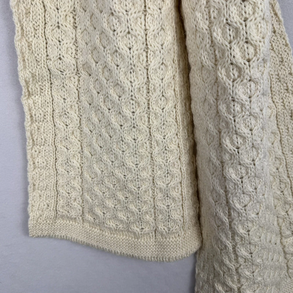 Aran Crafts 100% Irish Wool Scarf Cable Knit Cream Boho Hippie Outdoor Warm Cozy