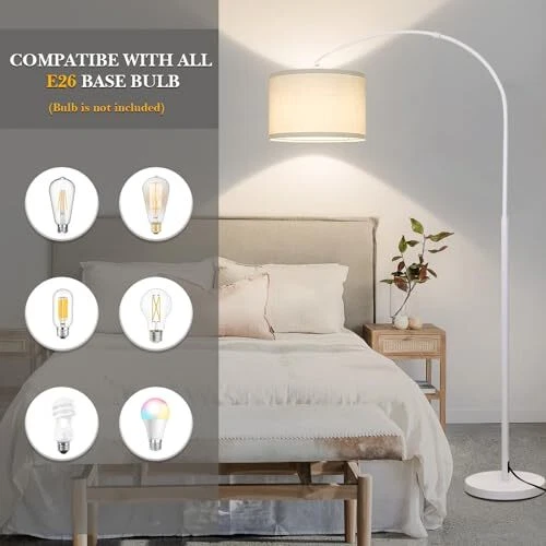 Return Policy Fast Delivery Trusted seller White Arc Floor Lamp, Modern Floor Lamp for Living Room with Adjustable Lamp Head, Tall Pole Standing Lamp with On/Off Pedal Switch, Over Couch Arched Reading Light for Bedroom, Office, Study Room Product Description Classic & Simple Design: Crafted in an classic arched pole with a simple linen shade, this white floor lamp can be integrated with various decoration styles perfectly, including antique, contemporary, traditional, farmhouse, etc. Absolutely a wonderful piece for home decoration. 350°Flexible Lamp Head: Considering differing lighting needs in daily life, this tall pole light adopts a rotatable hanging lampshade design, which can be rotated up to 350°horizontally or 180°vertically. No matter whether you want to emit focused light, or create mood lighting before sleeping, it can largely solve the inconvenience caused by the fixed lamp head direction. ON/OFF Foot Switch & Easy To Install: Controlled by an easy-operated foot switch on the power cord, the arched floor lamp brings you a hands-free experience. Simple one-step design also fully considers pregnant women and the elderly. All the mounting accessories are included for quick installation. Just twist the poles from the bottom to the top, and insert them in the base to complete it. Compatible with Alexa & Smart Home System: This arching light is compatible with smart outlets, which can work with Alexa, Google Home Assistant and Apple Homekit.(Note: Smart Plug Not Included) The farmhouse floor lamp works with various types of E26 base bulbs, including LED, CFL, incandescent, RGB, etc. (100W Max for incandescent bulbs, 20W Max for LED bulbs). Bulb is NOT included. Wobble-free&Safe to Use: Constructed with an extremely weighted base and metal pole, this living room floor lamp provides solid stability and it can stand firmly on your floor without shaking. Considerate design offers a safe lighting environment for you and your families, no longer worry about the heavy overhead lamp will get knocked over by your pets or kids accidentally. Shipping Returns Payment Shipping Shipping is FREE to all addresses other than APO/PO boxes in the lower 48 states. All our stock ships from US-based warehouses. Shipped via USPS or UPS (depending on location and package weight) Unless stated otherwise, all orders will ship within 24-72 hours of your payment being processed. Check our feedback to see the great reviews of FAST shipping we offer. Returns Seller does not accept returns Payment We currently accept payment via eBay managed payments only. Once payment is cleared, we will dispatch your shipment within 1-3 business days. Please refer to the "Shipping" tab for more information regarding shipping speed to your destination.