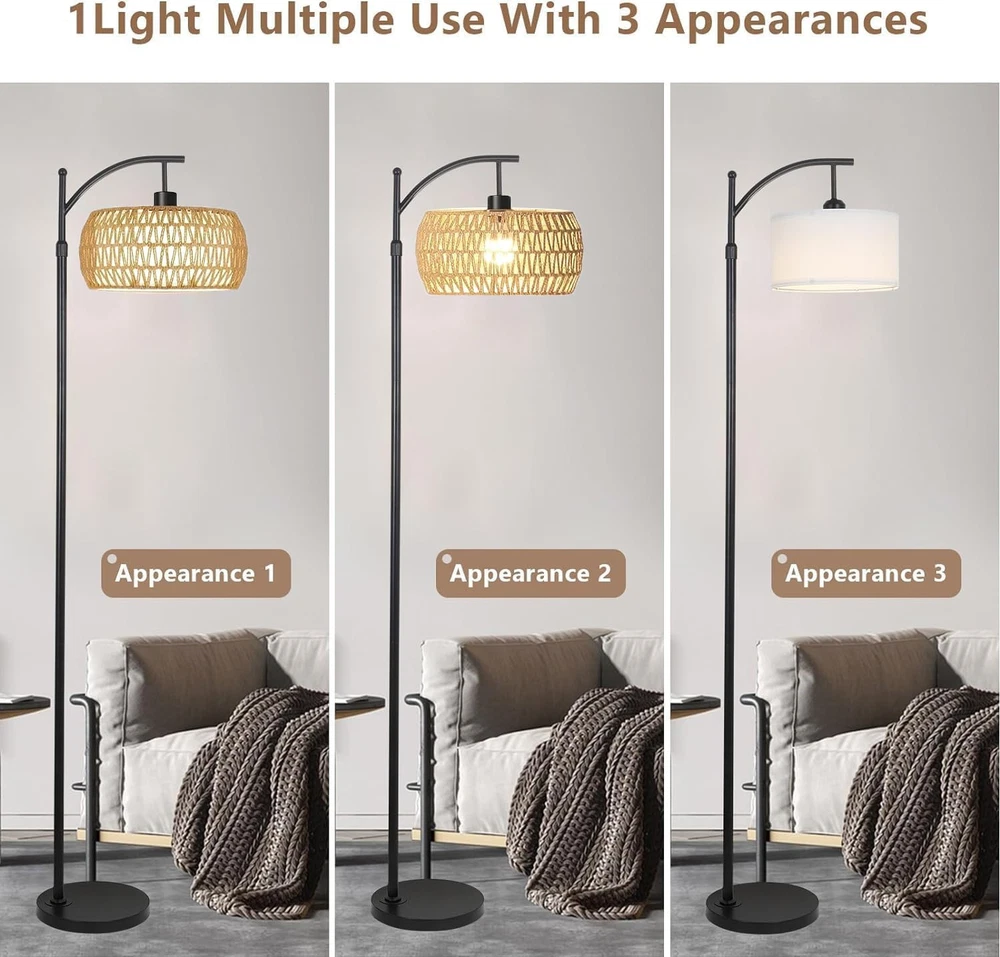 Arc Floor Lamp for Living Room Rattan Boho with 12Inch, cydariform Product Details Base Material: Rattan Product Dimensions: 11.8"D x 11.8"W x 72.8"H Lamp Type: 001 Shade Color: gold Shade Material: Linen Switch Type: Remote Style: Farmhouse Brand: ZECOXOL Color: cydariform Special Feature: Dimmable Light Source Type: LED Material: Metal Room Type: Metal + rattan Recommended Uses For Product: Decoration Power Source: Battery Powered Shape: Curved Controller Type: Remote Control Number of Light Sources: 1 Connectivity Technology: USB Included Components: Remote Control Is Waterproof: False Mounting Type: Floor Mount Wattage: 12 watts Lighting Method: Adjustable Control Method: Remote Specific Uses For Product: Decoration Water Resistance Level: Water Resistant Installation Type: Freestanding Number of Pieces: 1 Voltage: 110 Volts Brightness: 1200 Lumen Is Cordless?: Yes Size: 12Inch Manufacturer: ELY201 Part Number: 001 Item Weight: 12.03 pounds Item model number: 001 Special Features: Dimmable Batteries Included?: No Batteries Required?: No Product Dimensions : 11.8 x 11.8 x 72.8 inches; 12.06 Pounds Item model number : 001 Manufacturer : ELY201 Base Material: Rattan Product Dimensions: 11.8"D x 11.8"W x 72.8"H Lamp Type: 001 Shade Color: gold Shade Material: Linen 【3-in-1 Standing Lamp with Two Shade】The boho floor lamp comes with a boho rattan and linen drum lampshade, has 3 display effects. The removable lampshade can be freely combined according to your preference. Innovative design offers diverse options for everybody,this adjustable floor lamp suit for any home decor and is suitable for such style as contemporary, vintage, mid-century, traditional, farmhouse and so the like 【Stepless Dimmable & Three Color Temperatures】Rustic tall floor lamp comes with a 12W LED bulb, which could be adjusted lightness from 0-100% brightness and 3-color temperature settings ranging from 3000K-6000K as needed; This dimmable floor lamp also have pre-set modes offering various scenes such as: read, nursery, work and night light. It comes with a memory function, allowing it to recall the last lighting mode 【Control via Remote or Footswitch】This arc floor lamp adopts a combination remote control & foot switch, assuring convenience for daily life. You can easily turn it on/off, adjust brightness, change colors or set timing modes by buttons(*2 AAA batteries not included) 【360° Rotatable Lamp Arm & Height Adjustable】Retractable pole allows you to adjust the height of the tall lamp. You can adjust the height of the standing light up and down between 65"- 72.8" according to the height of your desk and sofa. What’s more, the arm of this living room floor lamp can also be rotated 360°, which means you are free to change the brightness direction for various tasks 【Thoughtful Gift】-This Black Arched Farmhouse Floor Lamp Will Be Amazing Accent For Living Room, Bedroom, Baby Room, Bohemian Decor, Wedding Decor Or Bohemian Themed Parties. It Will Be A Beautiful And Practical Blessing For Your Family Or Friends