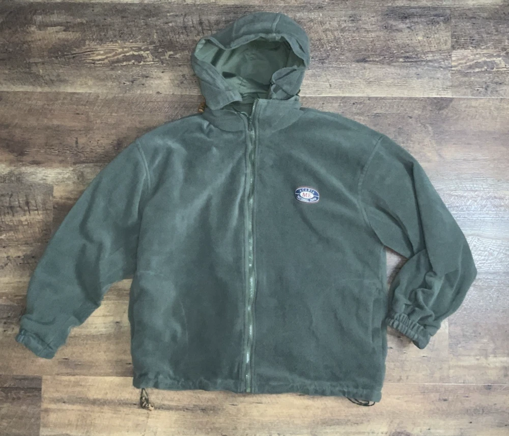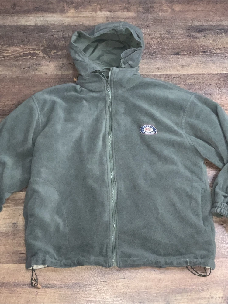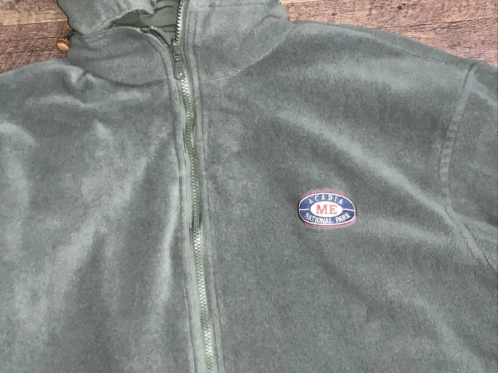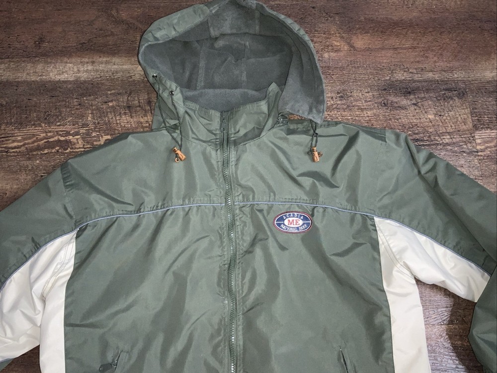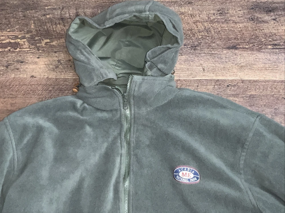 Arcadia National Park ME reversible Jacket Coat Green Hooded Fleece Medium