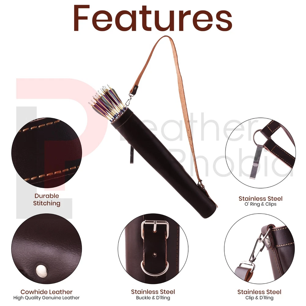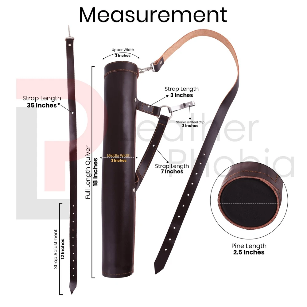 GENUINE LEATHER: Leather is specially designed and manufactured to provide the highest quality raw materials. This Archery Quiver is made with genuine leather that will give the best quality and durability for the quiver. Quiver straps are also made of leather. DETACHABLE AND ADJUSTABLE STRAP: It features a detachable strap that offers comfortability also a metal belt clip. The size of this hip quiver has a 18-inch deep arrow compartment. The shoulder strap can be adjustable according to your body. The product is perfect for professional archery equipment. BEST FIT & RESTFUL: The adjustable straps and belts will help you to give the best fit and comfortable positioning of the quiver to the archer. This quiver made it easy to draw and place arrows quickly. The lightweight solution will help to keep the archery more comfortable. It's very comfortable as a compound bow case. TOP-QUALITY: The basic material used is high-quality leather which gives high durability to the product. 100% SATISFACTION GUARANTEE: we care about our customers and give them top-quality archery equipment and accessories. We stand by our products. We believe in the quality of our archery quivers and the satisfaction of our customers is our priority.