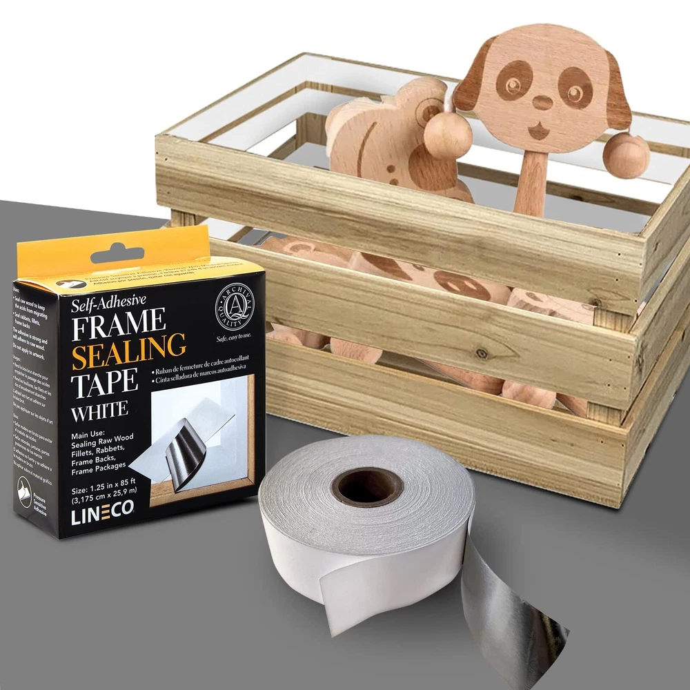 is a leading manufacturer of archival quality framing supplies for artwork, photographs, and documents. Trusted by professional framers in galleries, museums, and archives Ideal use for adhesive sticks to picture frame, photo frame, raw wood, fillets, rabbets, frame backs, frame packages or other DIY wood toys Manufactured from our exclusive Perma/Seal label stock with a foil layer, a non-yellowing, permanent acrylic adhesive and coated to match our Frame Backing Paper (sold separately) It is flexible, strong and puncture resistant for easy application. Acrylic adhesive creates a strong, durable bond on raw wood Picture frame sealing tape come with 1.25" x 85 ft