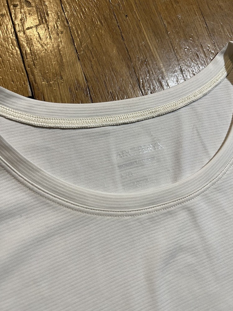 The Arc'teryx Women's Taema Crew Short Sleeve T-Shirt is designed for active wear in a size Large. Made from Arctic Silk fabric in a stylish White Heather color, this shirt provides a comfortable and breathable fit for women. With a regular fit and short sleeves, it is perfect for various outdoor activities or casual wear. The brand Arc'teryx is known for its high-quality performance gear, making this shirt a reliable choice for those seeking durable activewear.