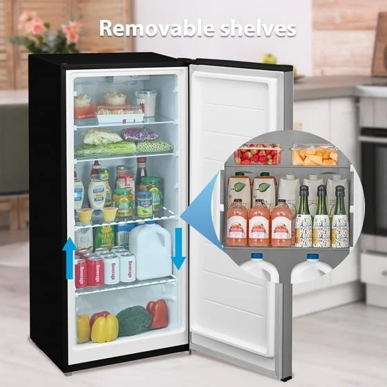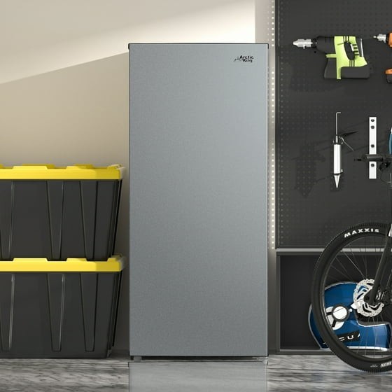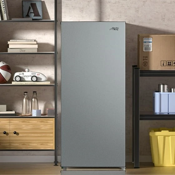 About this item Product details The Arctic King 7.1 Cu Ft Upright Freezer offers a spacious solution for your storage needs. It seamlessly converts from a refrigerator to a freezer, allowing you to organize items efficiently. The freezer features adjustable temperature control and multiple shelves, ensuring convenience and flexibility. Its frost-free design prevents ice buildup, and the stainless steel finish is both stylish and easy to maintain. Operating quietly, it helps save energy while the reversible door provides added versatility in placement. A reliable choice for families and anyone looking for optimal storage solutions. Dimensions: 22.44" L x 21.65" W x 50" H. Easily convertible between Refrigerator and Freezer Adjustable temperature control. Multiple shelves and bins for organization. Frost-free design prevents ice buildup. More details Brand Arctic King Refrigerator type Compact Refrigerators Volume capacity 7.1 cu ft Height 50 in Color category Silver Door style Standard Freezer configuration Side Door Freezer Energy consumption per year 333 kWh Energy efficiency rating 11 Defrost type Manual Number of doors 1 Installation type Freestanding Rec location Indoor Rec. use Residential, Commercial Door material stainless steel Hardware finish Stainless Steel Shelf material Plastic Number of shelves 4 Number of bins 0 Freezer capacity 7.1 cu ft Ice maker type No Ice Maker Refrigerator dispenser type No Dispenser Refrigerator feature Freezer, Reversible Door Hinges Depth with handle 22.4 in Depth without door & handles 19.7 in Depth with door open 41.34 in Activity Everyday, Indoor Activity, Outdoor Activity Assembled product weight 88.88 lb Home decor style Traditional Model ARU07B3AST Product line Upright Convertible Freezers/Refrigerator Manufacturer Midea Remote controlled N Smart home hub enabled N Power type Corded Electric Nrtl information UL Has nrtl listing certification Y Minimum temperature 0 ºF Number of zones 1 Cord length 66.9 in Refrigerator depth Standard Depth Volts 120 V