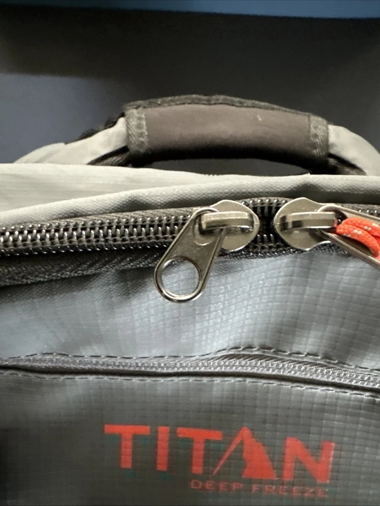 ✨ Description Stay cool on every adventure with this Arctic Zone Titan Deep Freeze 24-Can Insulated Backpack Cooler in gray and orange. Designed for portability and performance, this backpack keeps your food and drinks cold for hours with its Deep Freeze high-performance insulation and Therma-Flect radiant barrier lining . Perfect for hikes, picnics, camping trips, or beach days — it’s durable, stylish, and built to perform under the summer sun. Details: Brand: Arctic Zone Model: Titan Deep Freeze 24-Can Backpack Color: Gray with Orange Trim Capacity: Holds up to 24 cans Features: Deep Freeze high-performance insulation Therma-Flect radiant barrier interior Leak-proof, easy-clean lining Adjustable padded shoulder straps Exterior mesh pockets & bungee attachment system Zippered storage compartment Condition: Excellent pre-owned condition; clean interior, minimal exterior wear (see photos) Ships securely and quickly from Alley Cat Outlet , where cool finds meet cooler adventures! 🐾 🔑 Keywords Arctic Zone Titan cooler, insulated backpack, Deep Freeze 24 can, leakproof lunch cooler, outdoor travel gear, hiking camping cooler bag, Titan gray orange, Alley Cat Outlet