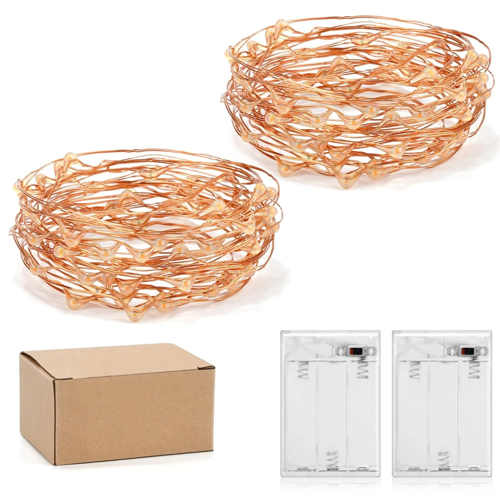 Description: 1.Fairy string lights for wedding season & party decorations. 2.Household embellishment - bedroom, mason jars, fence, patio, garden, tent...feel free to wrap the string lights (copper wire or silver wire) anywhere you like! 3.Hand craft - You can use those LED lights to make shiny wedding dress, or DIY night lights 4. high-quality and easily warp, you can put them in any places, it is also durable. Specification: Material: Copper wire Color: Warm White Length: 16 feet Light wire material: ABS / PVC transparent cable Beam angle: 360° Working temperature: -30°C ~ 80°C Power supply: 3 X AA batteries Package includes: 16 feet Starry Light X 2 Packed well *SUPER BRIGHT 50 LED STRING LIGHTS: These Best 50 LEDs Micro LED Battery Operated String Lights Lamp are perfect for using as a lighting addition to any decorative project. delicate copper wire hosts 50 very small LED bulbs that are about size of the rise grain and are intensely bright. With steady 360 degree viewing angle they illuminate in every direction. *INDOOR STARRY LIGHTS: (No Timer Function) 50 Super Bright Yellow Color LEDs Lights on 16 Ft Long Copper Ultra-Thin Wire with 4 Inches Distance Between LED Bulbs and 12 Inches Clear Cable Between Wire and Battery Box. *EASY TO SHAPE AND MOLD: Newest Clear and Small Battery Box That is Easy to Hide Requires 3 AA Batteries (Not Included). *ENERGY EFFICIENT, NO HEAT PROBLEMS: The ultra slim thin copper wire, Bendable but Sturdy Wire with LED Lights is waterproof. *CAREFREE AFTER-SALES SERVICE:Please be confident to buy Ariceleo fairy lights. Don't like it once received? Just return it by Amazon. We have a professional customer service team, If you have any questions during the use, please feel free to contact us.