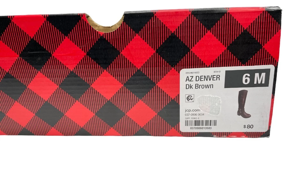 Seller Notes: “New with Open Box. No Issues Never worn. Free No Hassle Returns. Buy With Confidence” US Shoe Size: 6 Heel Style: Block Toe Shape: Round Toe Brand: Arizona Jean Co Theme: American, Equestrian, Modern Occasion: Business, Casual, Party/Cocktail, Travel, Workwear Features: Comfort, Lightweight, Memory Foam Department: Women Style: Riding Boot Closure: Zip Accents: Buckle Heel Height: Mid (2-2.9 in) Shoe Shaft Style: Knee High Type: Boot Upper Material: Faux Leather Pattern: Solid Model: Denver Color: Brown Character: Boots Shoe Width: M