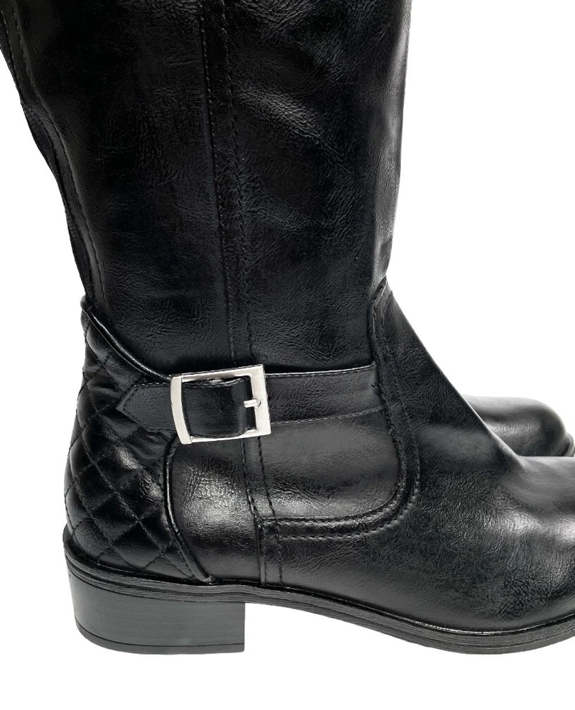 Arizona Dino Faux Leather Black Tall Wide Calf Riding Boots Women's 7 M NEW