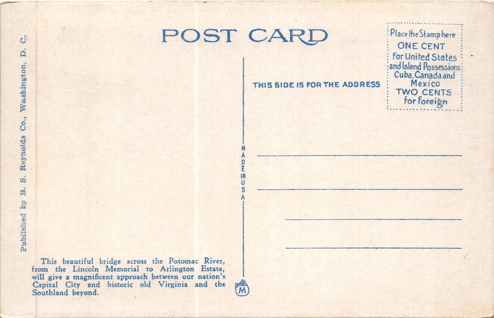 MAKE AN OFFER. THE MORE YOU BUY THE BETTER DEAL I WILL ACCEPT The postcard features an image of the Arlington Memorial Bridge in Washington, D.C., with the Lincoln Memorial and Washington Monument in the background. The Arlington Memorial Bridge is a Neoclassical-style bridge that spans the Potomac River, connecting the Lincoln Memorial in Washington, D.C., to the Arlington Estate in Virginia.