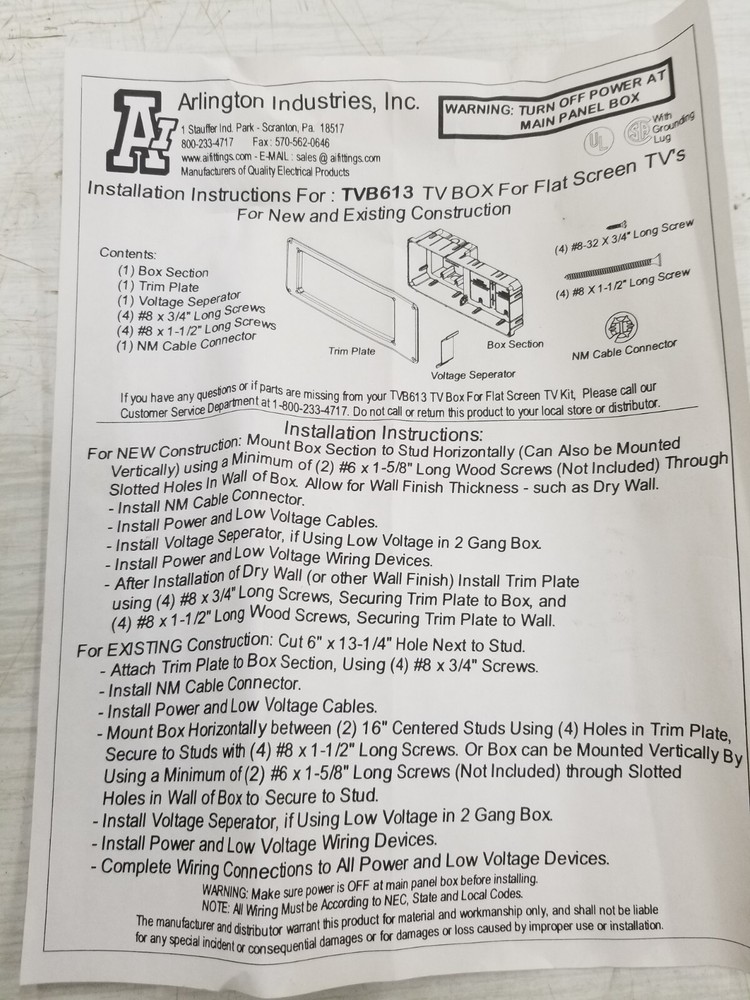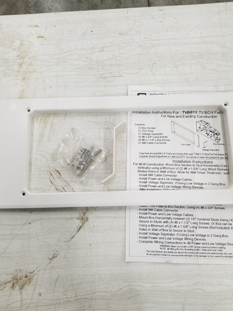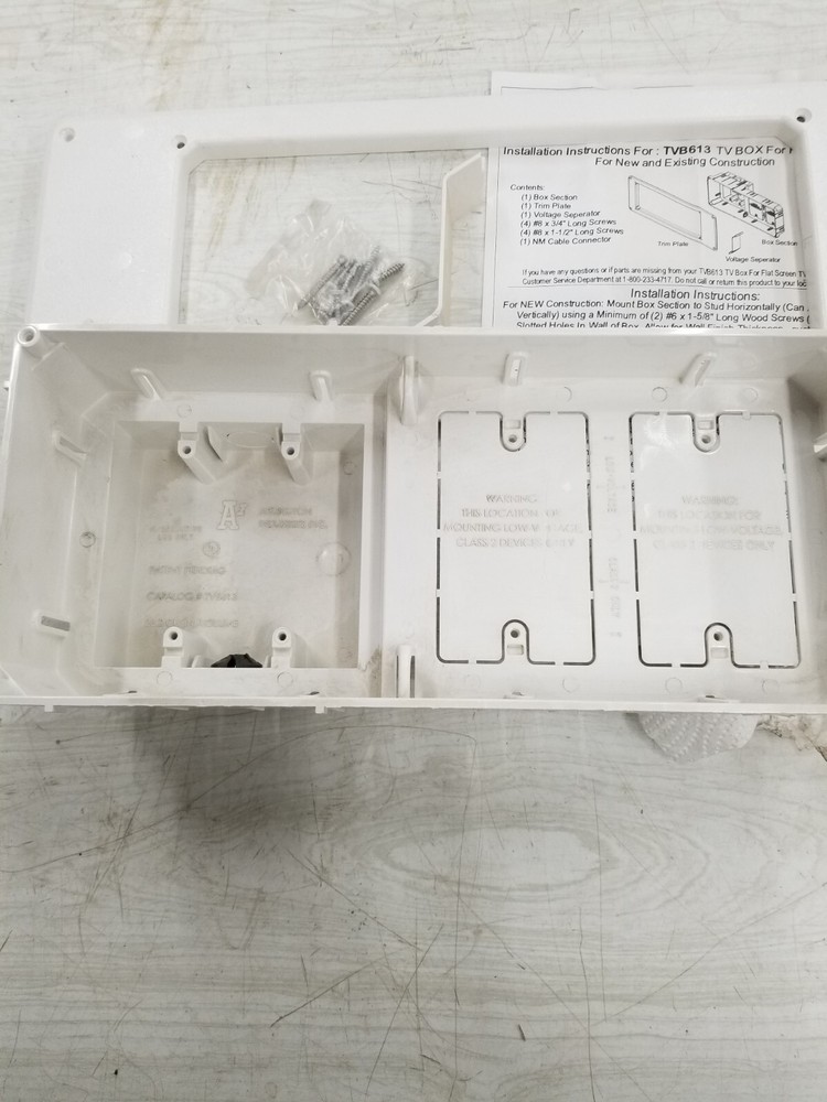 Arlington TVB613 Recessed TV Box with Cover Plate. Condition is New. Shipped with USPS Ground Advantage.