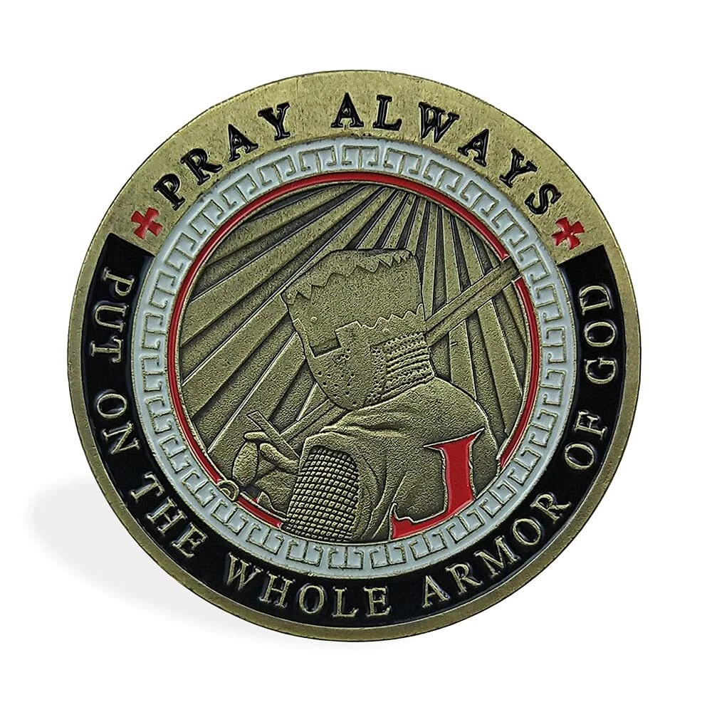 Coin is 1.77 inches in Diameter and 0.12 inch Thick Obverse features the soldier put on the whole armor of god Reverse shows the full armor of God Honor and encourage the military soldiers Great gift to show appreciation and support