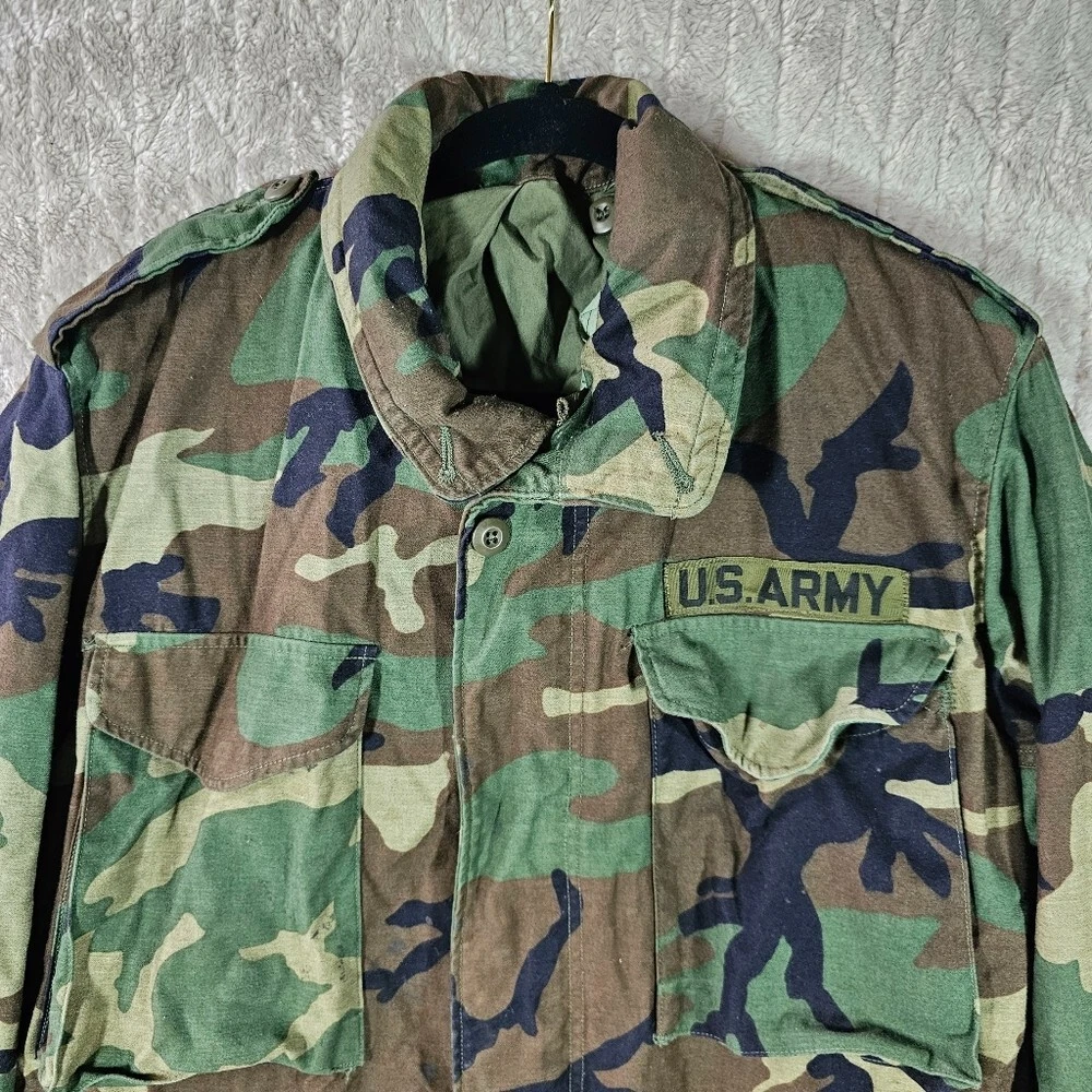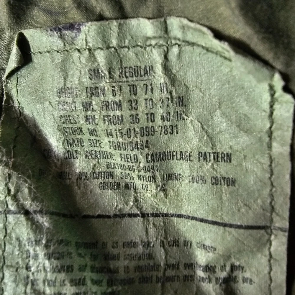 Classic army military field coat. Multiple pockets. Has a rollaway hood that tucks into the collar with a zip closure. In good pre owned condition, has a couple of discoloration as shown in the photos. See photos for full details.