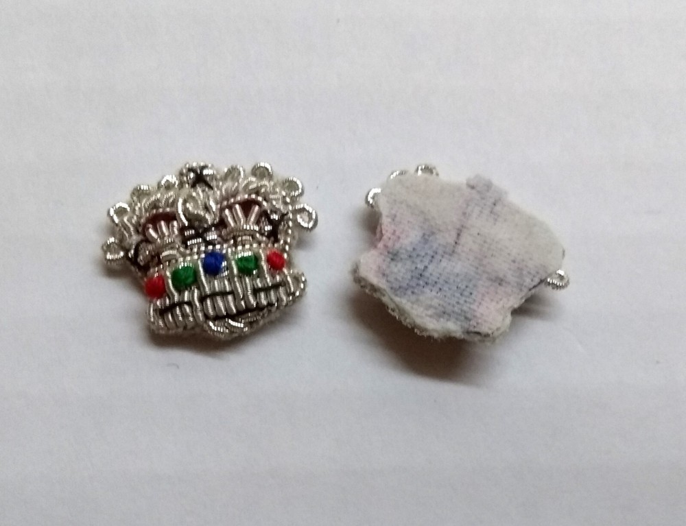 Army Silver Crown Gilt Crimson Padding Hand Embroidered Insignia 5/8 Inch 1 Pair