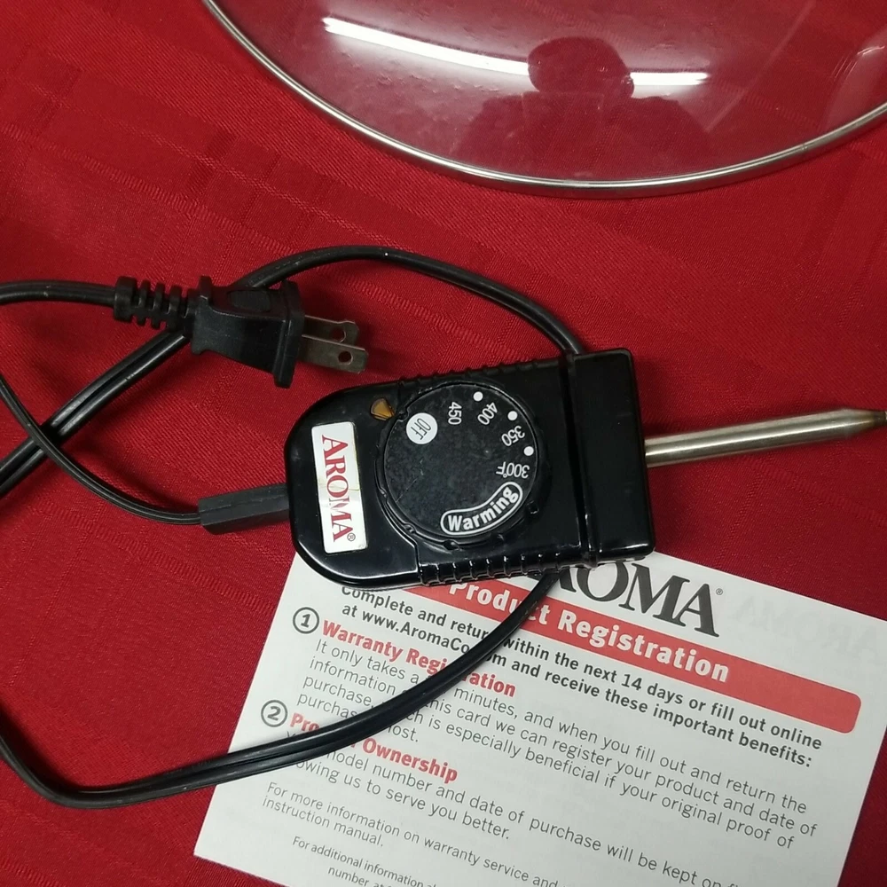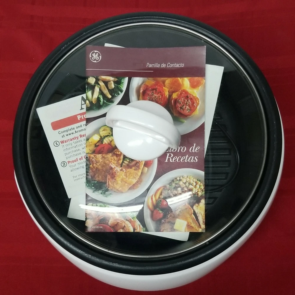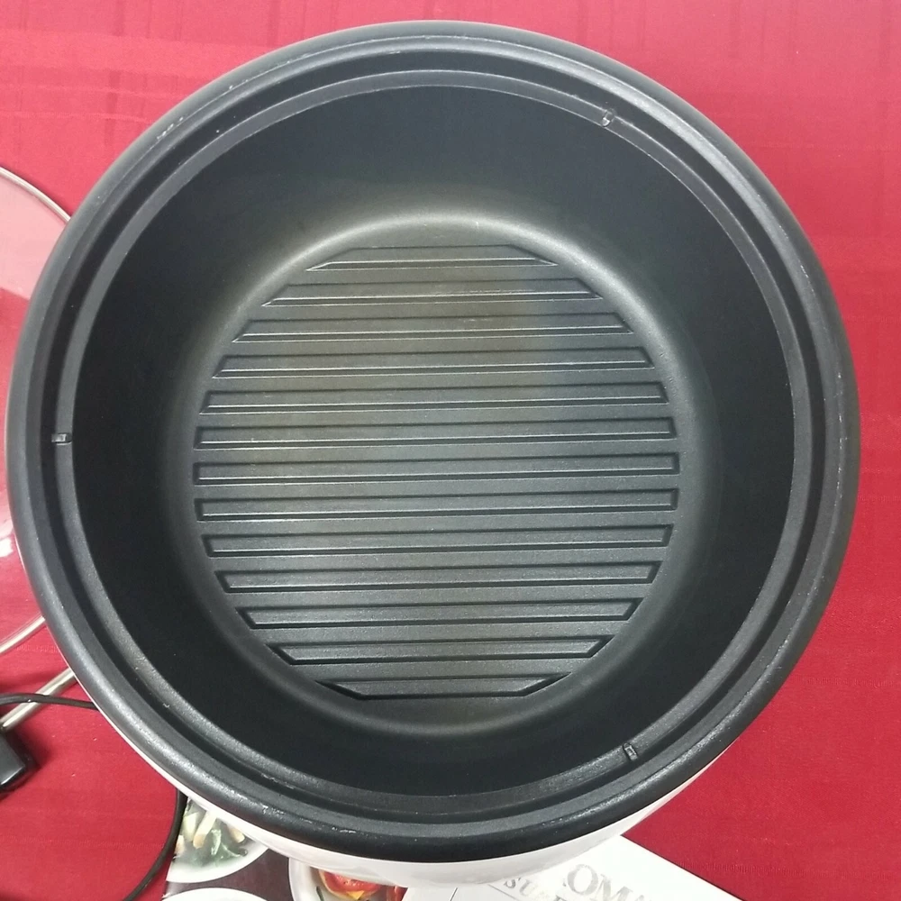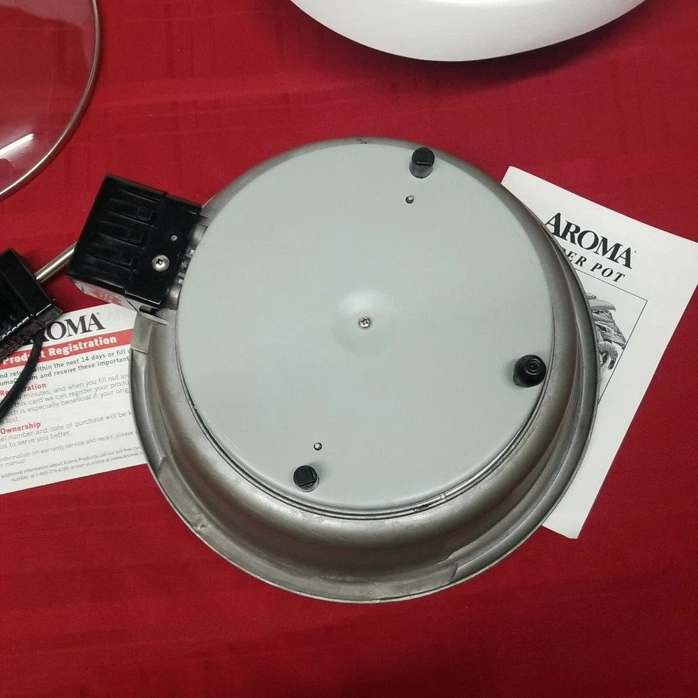 Aroma Super Pot w/ Grill Plate ASP-133 Housewares 3 Quart 10" 3-in-1 Recipe Book. It's a grill. It's a slow cooker. It's a food steamer. It's the Grillet! The Aroma Grillet 3-in-1 Indoor Grill is the hero of home cooking. Sizzling steaks. One-pot wonders. Healthy steamed meals. Prepare all this and more with the turn of a knob. Aroma takes the "cook" out of home cooking - turning kitchen time into your time! Tested: water boiled in a few minutes. Nice little appliance, looks good. Weight is 5 lb. 9.2 oz. without packaging. 12.5" x 7.5" SJ.31222.24.9