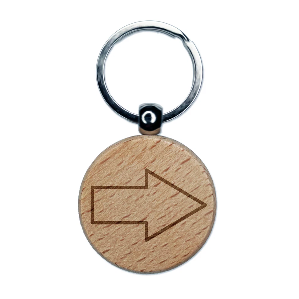 Arrow Rounded Corners Outline Engraved Wood Round Keychain Tag Charm