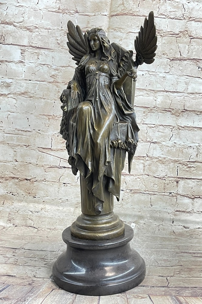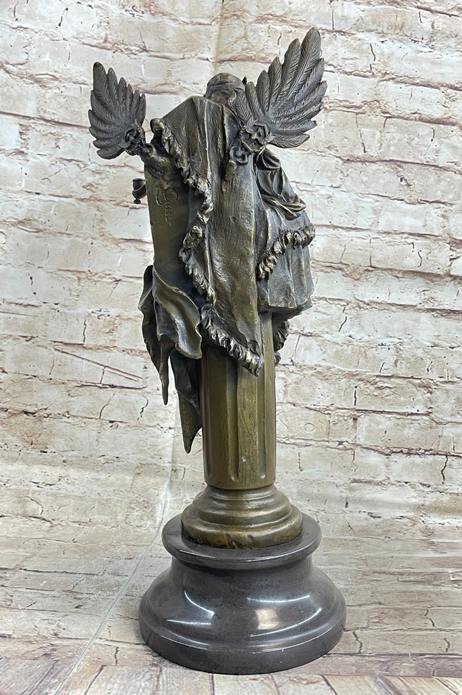 Art Deco Hot Cast Large Cleopatra Mistress of seduction Bronze Sculpture Artwork Art Deco Hot Cast Large Cleopatra Mistress of seduction Bronze Sculpture Artwork Condition : This sculpture is in a perfect condition. Bronze Dimensions with Marble Base: Height 18" X Width 8" Marble Dimensions: Diameter 6.5" Height without base:15" Weight:18 LBS Inventory:17YDZ06710071 This exquisite sculpture depicts the iconic Cleopatra sitting regally inside her palace, gazing into a mirror adorned with images of goddesses. The queen of Egypt at only 17 years old, Cleopatra's legendary bearing and seductive charm continue to elevate her among rulers and women. Hand-cast in pure bronze, this sculpture features an amazing replica of ancient cypress—the wood of the pharaohs—as its finish. The intricate detailing captures Cleopatra's allure and majesty, from her elegant posture to the ornate designs of her surroundings. The sculpture sits atop a large, heavy black marble base, providing a striking contrast that enhances its regal presence. The black marble base not only adds to the sculpture's stability but also accentuates its luxurious appeal. Cleopatra's serene expression and the finely crafted elements around her make this piece a true work of art, reflecting both historical reverence and artistic excellence. Signed by the artist Cezaro, this sculpture is a coveted collectible, perfect for adding a touch of ancient elegance to any collection. Whether displayed in a home, office, or gallery, it is sure to captivate viewers with its timeless beauty and intricate craftsmanship. Add this remarkable piece to your collection today and celebrate the enduring legacy of Cleopatra. Signed Original artwork by Cesaro Cleopatra Egyptian Goddess bronze Sculpture Video will open in a new window Using the eBay App? Paste link into a browser window: [isdntekvideo] Shipping Terms : Most of our items are shipped via USPS (United States Postal Service) mail or UPS. Most orders are shipped within 24-48 hours of purchase. Please be aware that not all items are available for USPS shipping due to size and weight. We do ship to Hawaii, Alaska, Canada, Puerto Rico, APO/AE, and U.S. Virgin Islands, however, an additional charge may be required. Please contact us before making any purchases in these areas. For Non-USA customers, you may be responsible for all duty, tax, brokerage fees that may be due upon delivery (shipping costs cover freight charges only). We also ship internationally. Please refer to the "Shipping and Handling" chart for the rates for each area. Payment : We accept just about any form of payment. PayPal, Master Card, Visa or American Express credit cards. Money orders, cashiers checks, and even personal or business checks. For governmental institutions, we will also accept a purchase order. Please understand that for personal or business checks we have to wait for the check to clear (usually 7 days) before shipping. Condition : New Detailed Hand Crafted Hot Cast Bronze Satisfaction Guaranteed. This is Stock Photo, Slight Color Variation!! Listing and template services provided by inkFrog