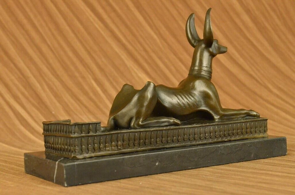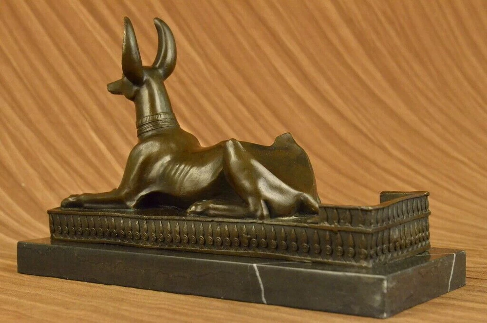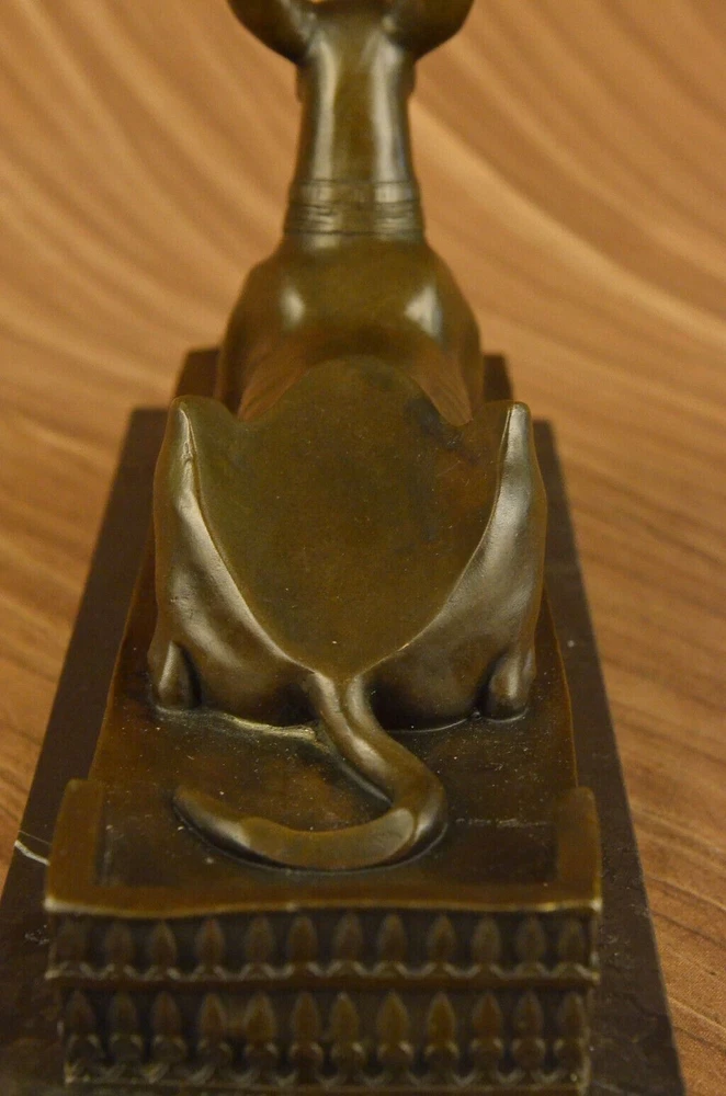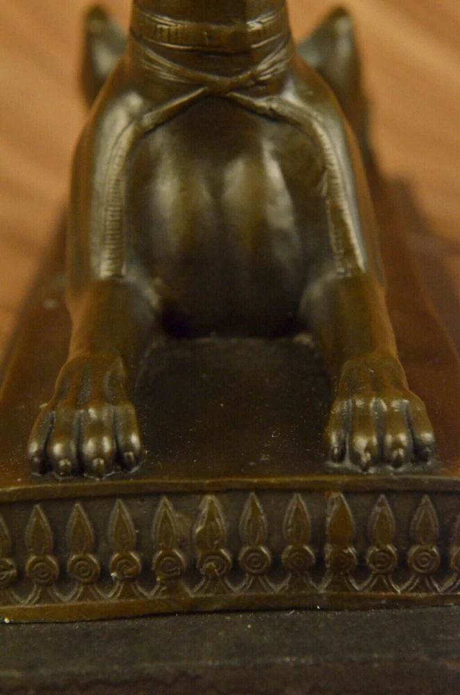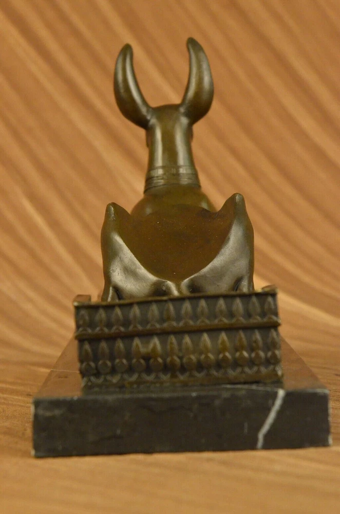 . . Condition : This sculpture is in perfect condition. Bronze Dimensions with Marble Base: Height 9" X Width 13 1/2" Marble Dimensions: 13 1/2" X 5" Height without base: 8" Weight: 15 LBS Inventory: 29YDW0215092 Introducing the captivating "Hot Cast Egyptian Dog Anubis" bronze sculpture, a true testament to the allure and mystique of ancient Egyptian mythology. This remarkable piece showcases Anubis, the jackal-headed deity associated with embalming, the afterlife, and the protection of the deceased. Crafted through the meticulous process of lost-wax casting, this sculpture embodies the artistry and craftsmanship of ages past. The dark brown patina finish enhances its depth and lends an air of antiquity, further highlighting the intricate details of Anubis' form and features. Anubis, with his canine-like appearance, stands tall and regal upon a marble base, serving as a reminder of his significance and prominence in Egyptian mythology. The marble base not only provides stability but also adds a touch of elegance, enhancing the overall aesthetic of the sculpture. This exquisite bronze figurine is a testament to the skill and talent of the renowned artist, Milo, whose signature adorns the sculpture, confirming its authenticity and artistic merit. Immerse yourself in the captivating world of ancient Egypt with this extraordinary Anubis bronze sculpture. Whether you are an avid collector of Egyptian art, a lover of mythology, or simply appreciate the beauty of fine craftsmanship, this piece will undoubtedly be a prized addition to your collection or decor. Allow the spirit of Anubis to guard and protect your space, invoking the rich history and timeless mystique of ancient Egypt. Hot Cast Egyptian Dog Bronze Sculpture Dark Brown Patina Marble Base Figurine www.bronzhaus.com Video will open in a new window Using the eBay App? Paste link into a browser window: [isdntekvideo]