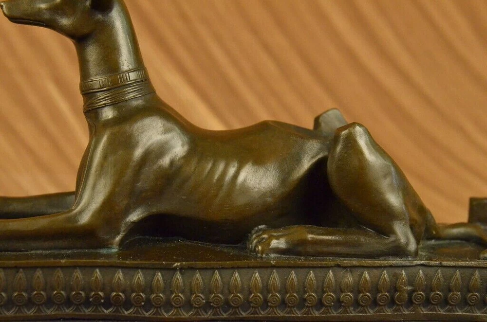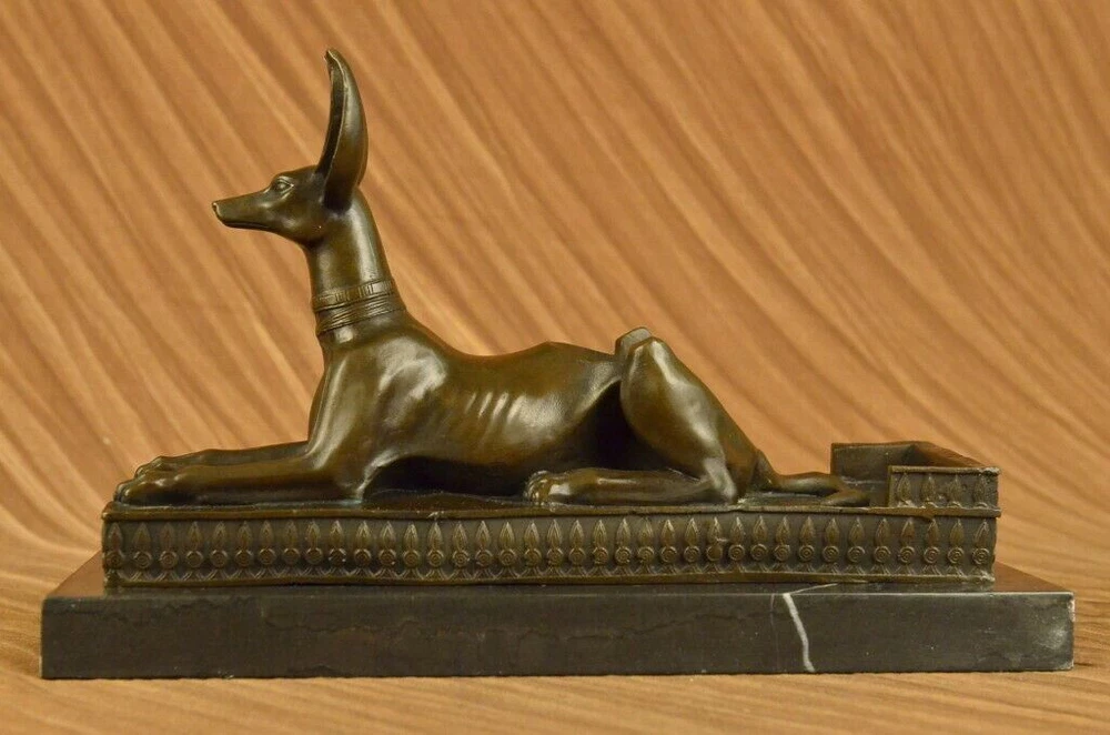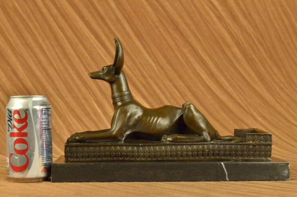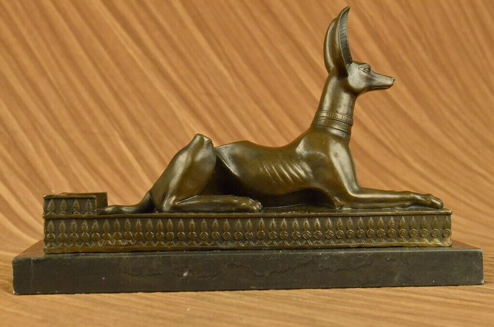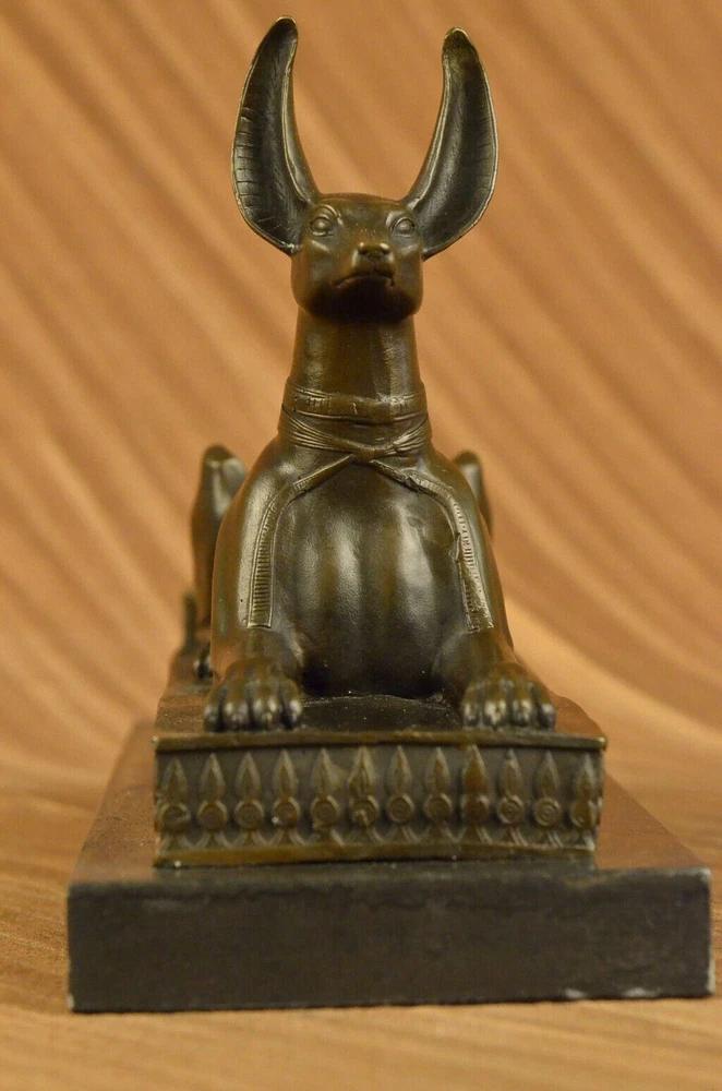 . . Condition : This sculpture is in perfect condition. Bronze Dimensions with Marble Base: Height 9" X Width 13 1/2" Marble Dimensions: 13 1/2" X 5" Height without base: 8" Weight: 15 LBS Inventory: 29YDW0215092 Introducing the captivating "Hot Cast Egyptian Dog Anubis" bronze sculpture, a true testament to the allure and mystique of ancient Egyptian mythology. This remarkable piece showcases Anubis, the jackal-headed deity associated with embalming, the afterlife, and the protection of the deceased. Crafted through the meticulous process of lost-wax casting, this sculpture embodies the artistry and craftsmanship of ages past. The dark brown patina finish enhances its depth and lends an air of antiquity, further highlighting the intricate details of Anubis' form and features. Anubis, with his canine-like appearance, stands tall and regal upon a marble base, serving as a reminder of his significance and prominence in Egyptian mythology. The marble base not only provides stability but also adds a touch of elegance, enhancing the overall aesthetic of the sculpture. This exquisite bronze figurine is a testament to the skill and talent of the renowned artist, Milo, whose signature adorns the sculpture, confirming its authenticity and artistic merit. Immerse yourself in the captivating world of ancient Egypt with this extraordinary Anubis bronze sculpture. Whether you are an avid collector of Egyptian art, a lover of mythology, or simply appreciate the beauty of fine craftsmanship, this piece will undoubtedly be a prized addition to your collection or decor. Allow the spirit of Anubis to guard and protect your space, invoking the rich history and timeless mystique of ancient Egypt. Hot Cast Egyptian Dog Bronze Sculpture Dark Brown Patina Marble Base Figurine www.bronzhaus.com Video will open in a new window Using the eBay App? Paste link into a browser window: [isdntekvideo]