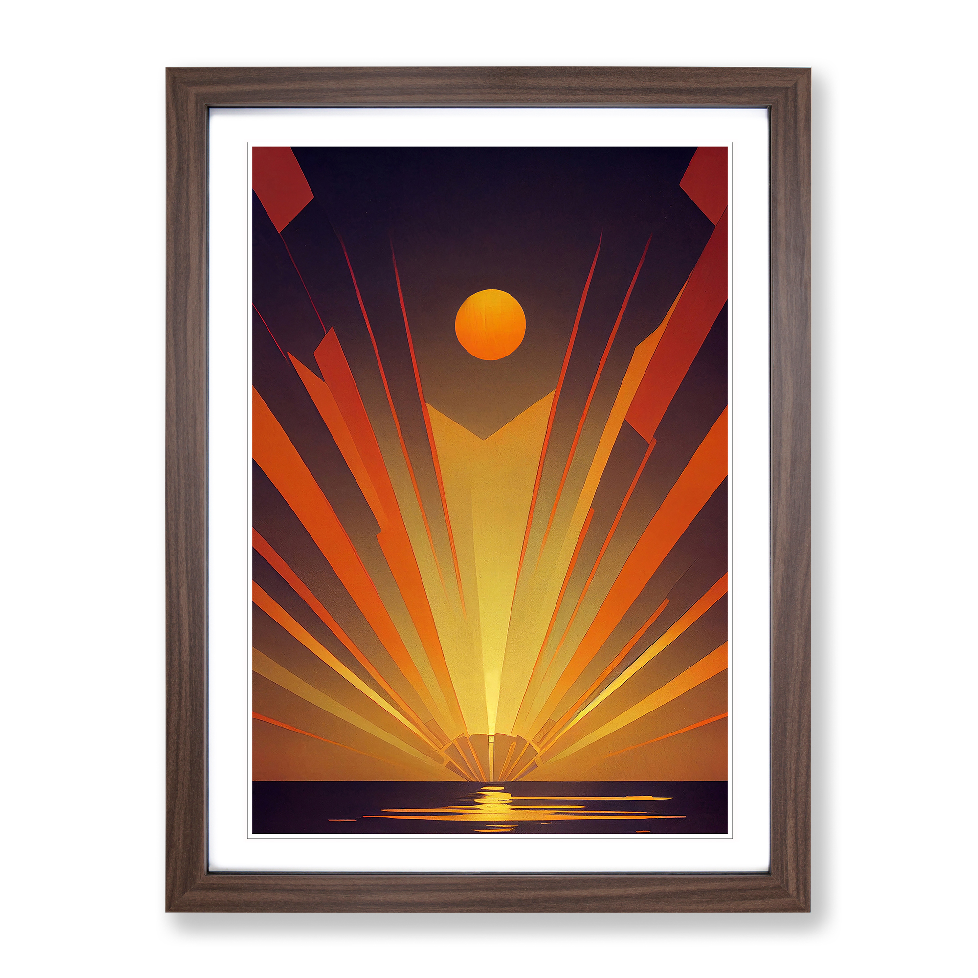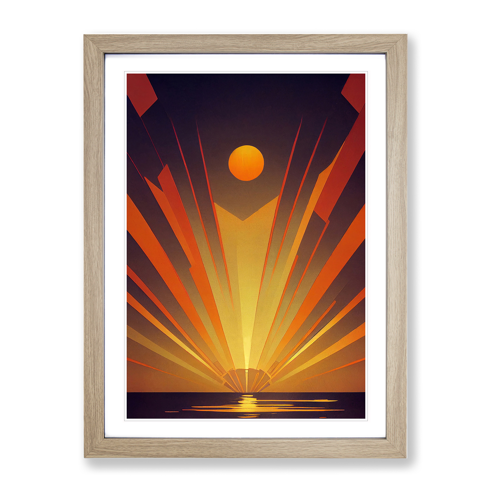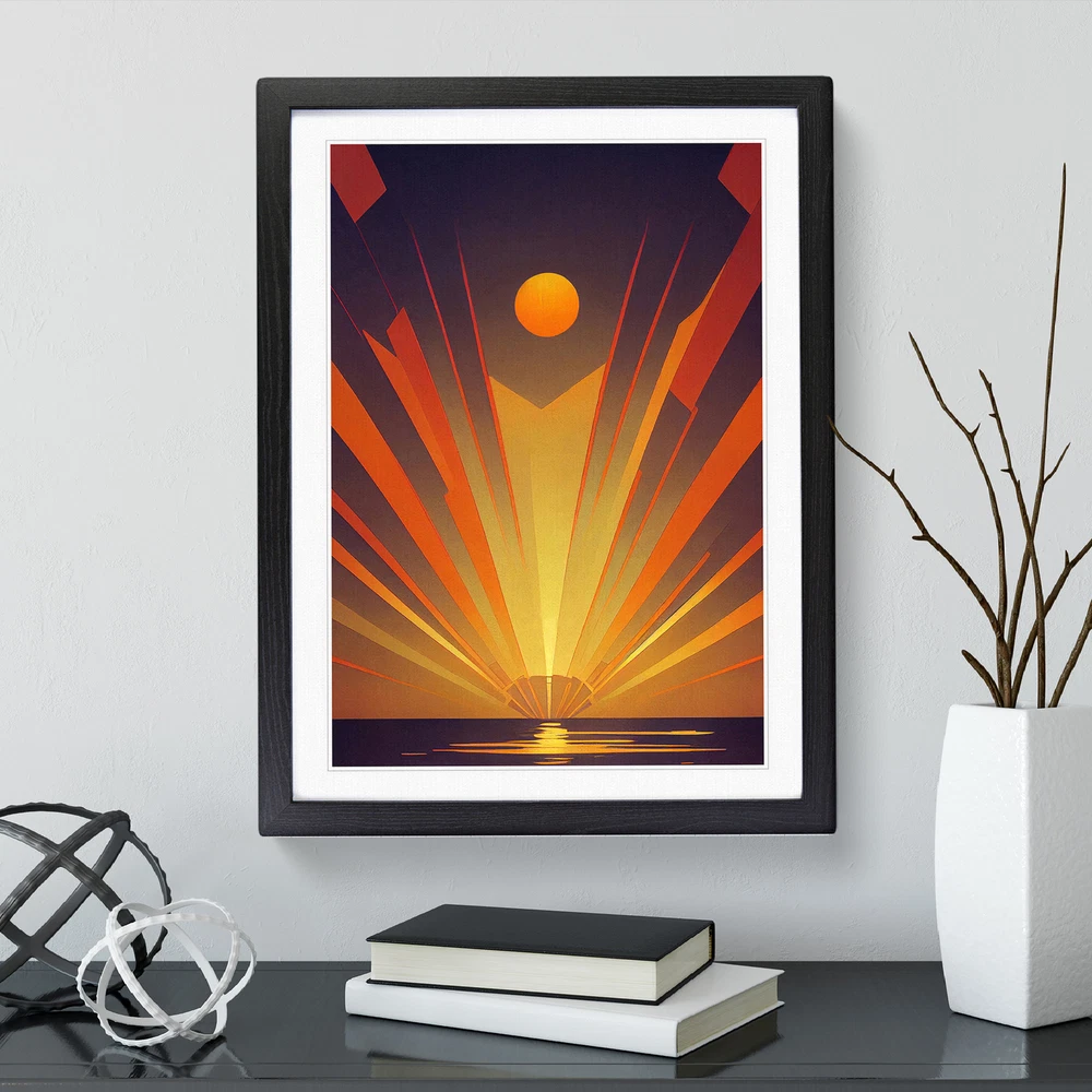 Transform your living space with our captivating framed wall art prints. Crafted in the UK, the stunning Art Deco Ocean Sunset No.5 framed print is designed to elevate your home decor. We utilise high-quality inks to ensure the colours of the artwork are rich, vibrant, and true to life. The print seamlessly fits within a contemporary frame, creating a stylish wall art picture that is ready to hang in your living room, lounge, bedroom, dining room and home office. Visit Our Shop eBay Message Framed Art Print Enhance your living space and showcase your individual style with our framed prints. Each design is printed upon premium art paper with fade-resistant inks, ensuring the colours remain rich and vibrant for years to come. The print is encased in a ready-to-hang frame, offered in black, oak, or walnut, and safeguarded by shatter-resistant Perspex. An ideal addition to your home, and the perfect gift choice. Like what you see? Visit our eBay store to see more. Premium Quality : The design is printed on quality art paper, enhanced with fade-resistant colours. Ready to Hang : The frame is pre-fitted with hanging hardware, making wall mounting simple, safe and secure. Frame Dimensions : A4 - 25 x 34 cm / A3 - 34 x 46 cm / A2 - 46 x 64 cm. Fast Shipping : Prompt, reliable UK-based dispatch. Customer Satisfaction : Our priority is your satisfaction which is why we offer a hassle-free return policy. Payment You can pay for your order safely and securely via credit or debit card, Apple Pay, Google Pay, and PayPal. Shipping Production times are 1 to 2 working days. Orders are sent via Royal Mail or Evri (depending on size). Returns For your peace of mind, we have a 30-day returns policy in place. Please, contact us for more details. At Big Box Art, we are dedicated to providing high-quality wall art and decorative homeware items. From the outset, we've focused on excellence in our products, service, and reputation, continually enhancing our standards. With an extensive selection of designs, you're certain to discover the perfect piece to suit your taste. ? Copyright 2021, Big Box Art. All rights reserved. Made with by eBayshopdesign.org