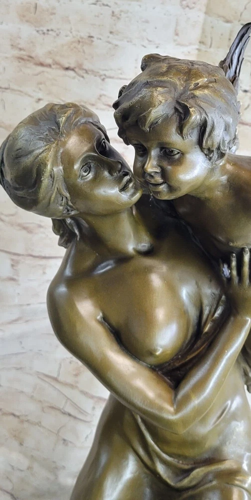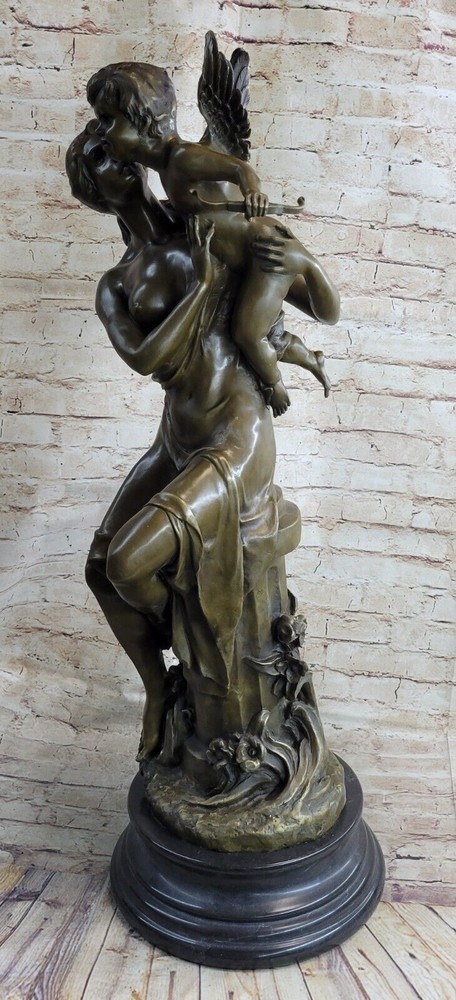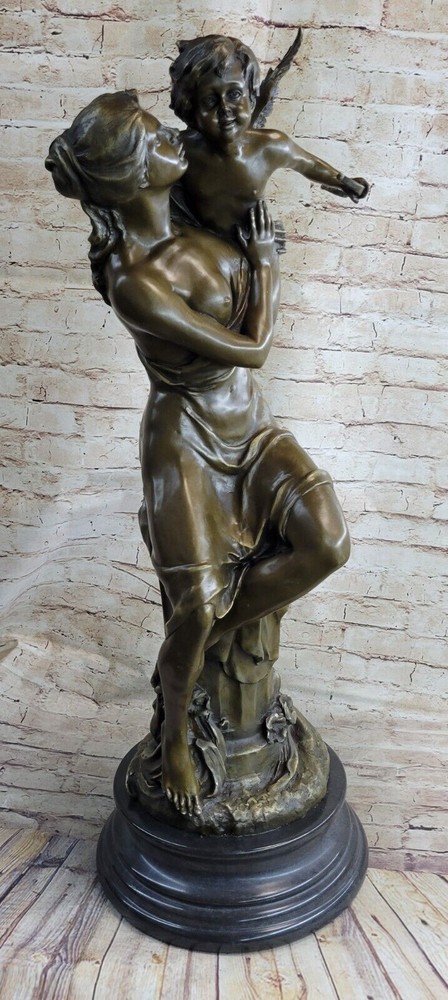 Art Deco Sculpture Angel Nude Woman Her Sleeping Cherub Baby Bronze Gift Art Deco Sculpture Angel Nude Woman Her Sleeping Cherub Baby Bronze Gift Condition : This sculpture is in perfect condition. Bronze Dimensions with Marble Base: Height 32" X Width 12" Marble Dimensions: Diameter 12" Height without base:28" Weight:75 LBS Inventory:97Y29128079 This exquisite sculpture portrays a beautiful woman seated atop a regal column, cradling a precious baby angel, or cupid, in her arms. The cupid holds an arrow, poised and ready to fly away, adding to the enchanting scene depicted in the sculpture. The column is adorned with intricate floral decorations at its base, enhancing the overall beauty and elegance of the piece. Standing on a black marble base, the sculpture exudes a sense of grandeur and sophistication. Crafted using the lost wax method, this large sculpture exhibits meticulous attention to detail and fine craftsmanship. Signed by the artist Milo, it is a timeless masterpiece that captures the grace and beauty of the human form and the innocence of childhood. 32" Tall Original Milo Nude Woman Holding a Baby Angel Bronze Sculpture Marble Video will open in a new window Using the eBay App? Paste link into a browser window: [isdntekvideo] Shipping Terms : Most of our items are shipped via USPS (United States Postal Service) mail or UPS. Most orders are shipped within 24-48 hours of purchase. Please be aware that not all items are available for USPS shipping due to size and weight. We do ship to Hawaii, Alaska, Canada, Puerto Rico, APO/AE, and U.S. Virgin Islands, however, an additional charge may be required. Please contact us before making any purchases in these areas. For Non-USA customers, you may be responsible for all duty, tax, brokerage fees that may be due upon delivery (shipping costs cover freight charges only). We also ship internationally. Please refer to the "Shipping and Handling" chart for the rates for each area. Payment : We accept just about any form of payment. PayPal, Master Card, Visa or American Express credit cards. Money orders, cashiers checks, and even personal or business checks. For governmental institutions, we will also accept a purchase order. Please understand that for personal or business checks we have to wait for the check to clear (usually 7 days) before shipping. Condition : New Detailed Hand Crafted Hot Cast Bronze Satisfaction Guaranteed. This is Stock Photo, Slight Color Variation!! Listing and template services provided by inkFrog
