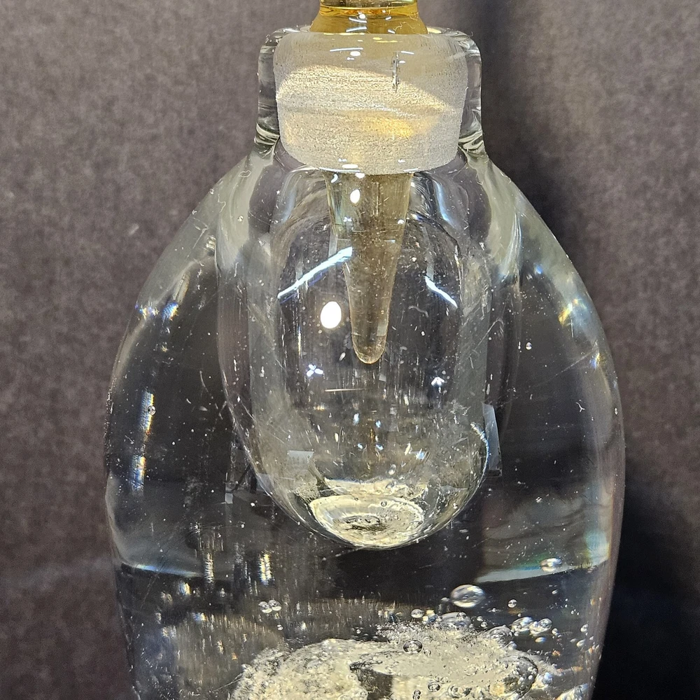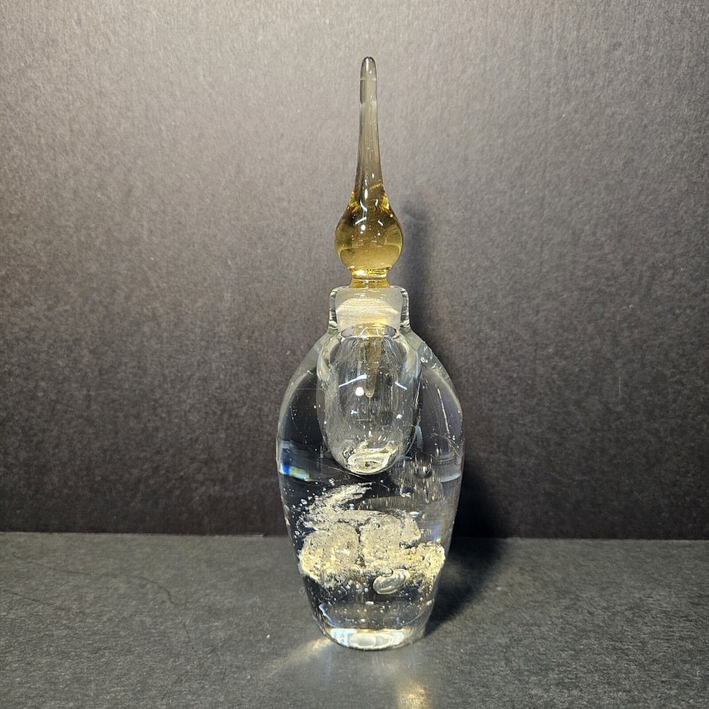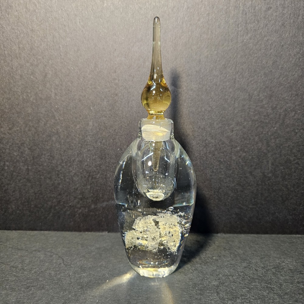 This unique art glass perfume bottle is in good condition with no flaws that I could detect. It measures approximately 8" tall by 2.5" wide. If you have any questions about this item, please feel free to contact me. Thanks for looking!