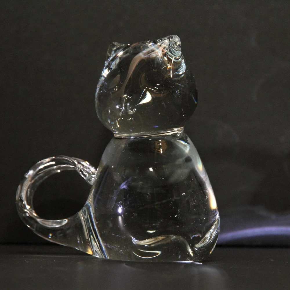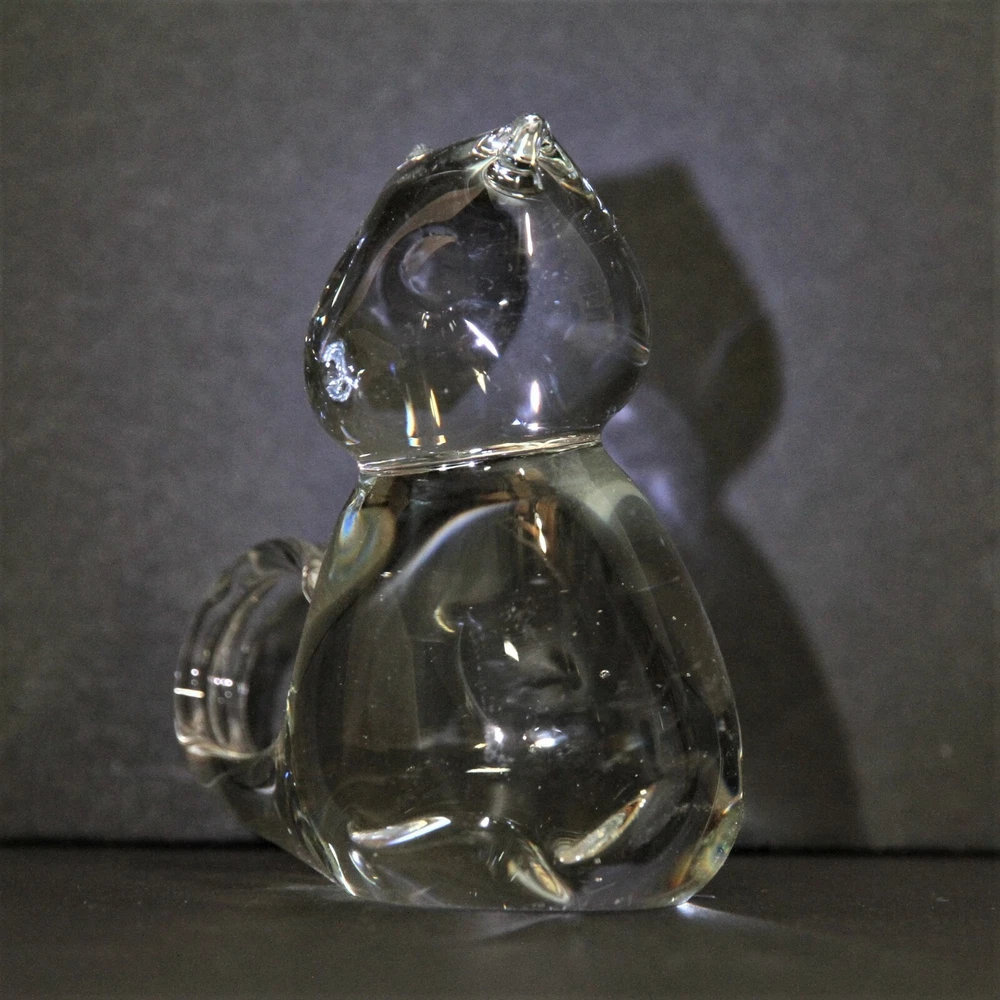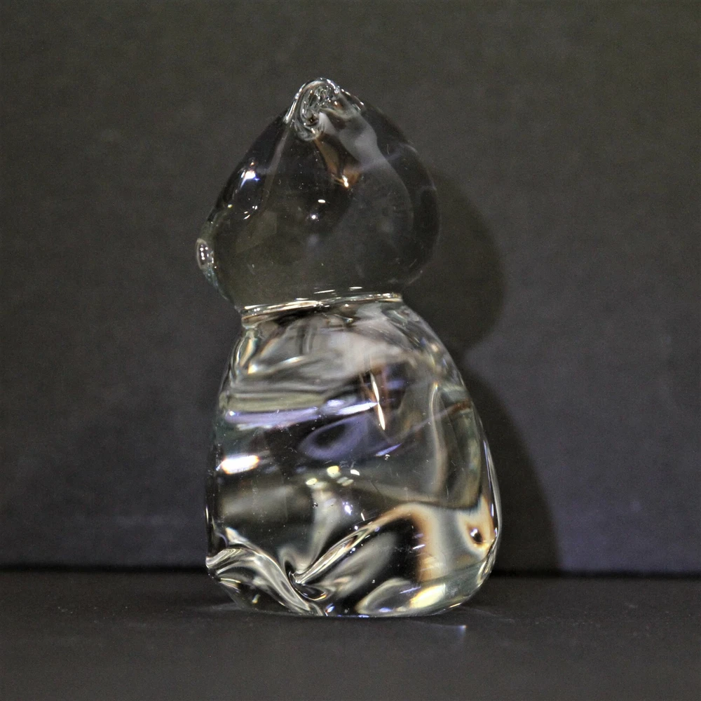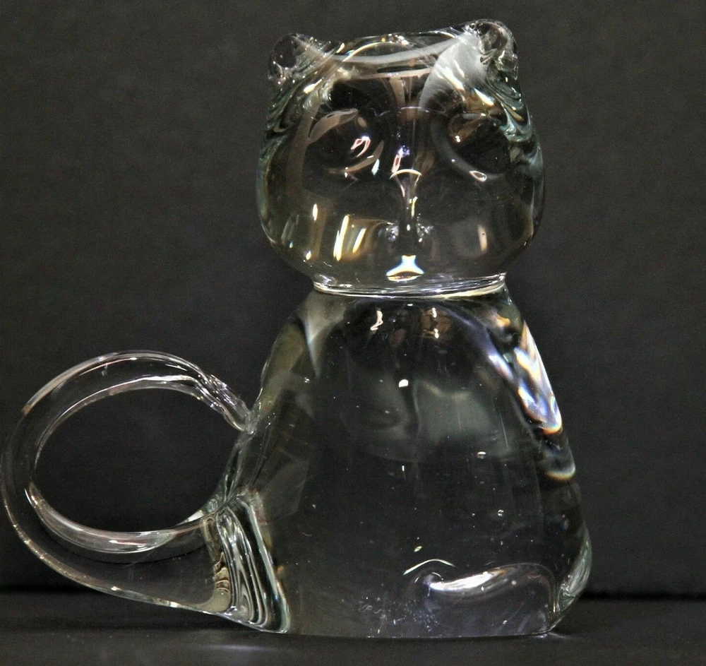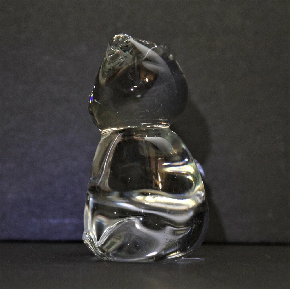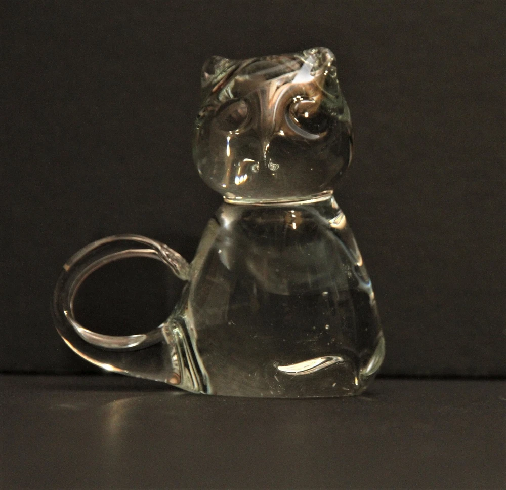 This listing is for a clear glass cat. Measures 3 1/4 inches (8 cms) tall 3 inches (7.6 cms) wide from side to side 1 1/2 inches (8 cms) deep from front to back. Find more GLASS and more CAT-themed items in my eBay store!