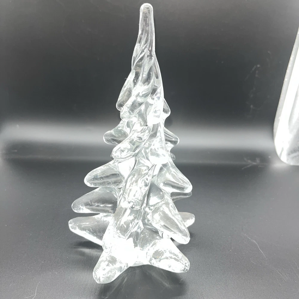 Beautiful glass Christmas tree sculpture. Measures approximately 8.5” tall, 4.5” wide. A little abstract in design. Small fleabite on bottom of tree. Polished bottom. See my eBay store for more vintage treasures listed daily!