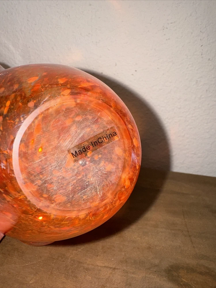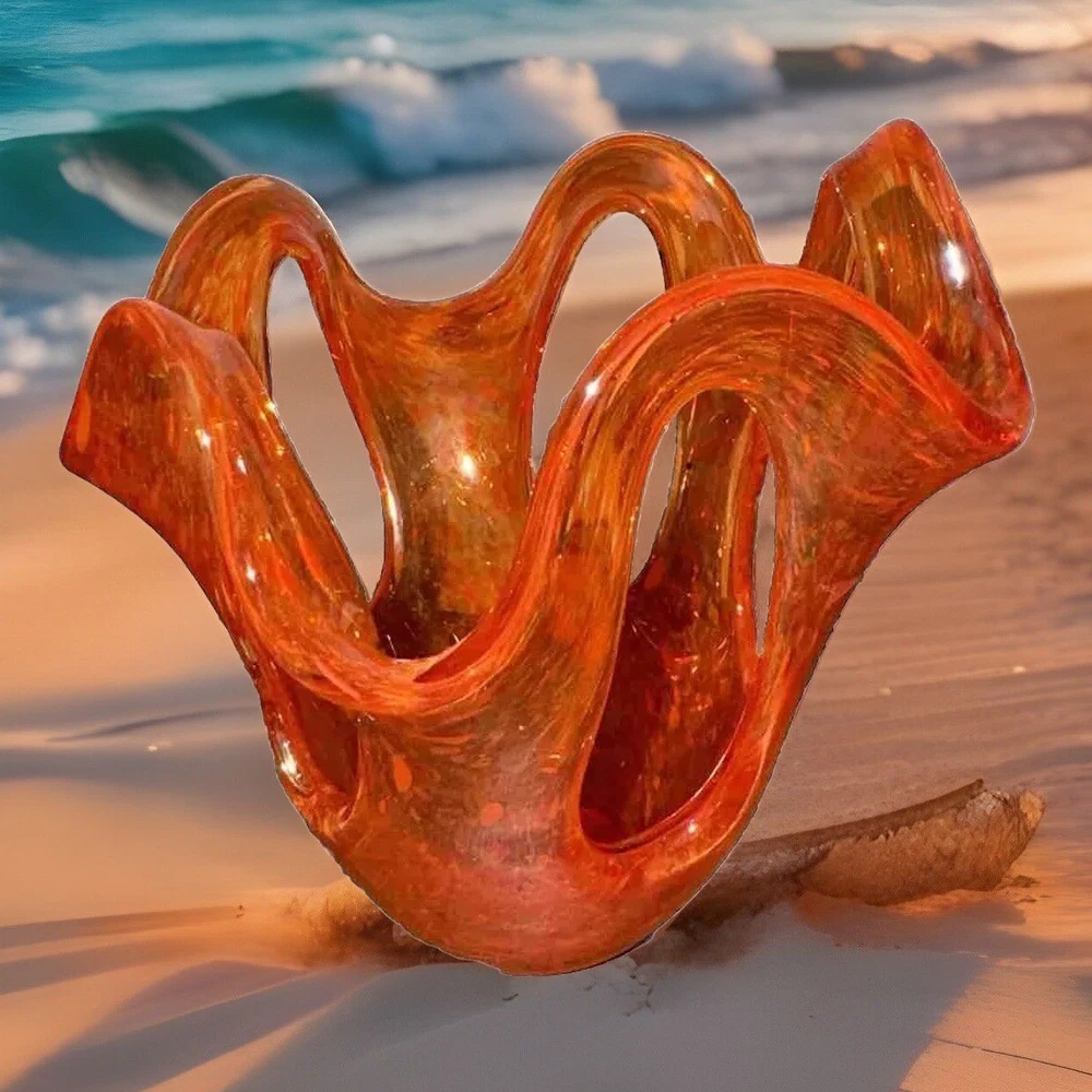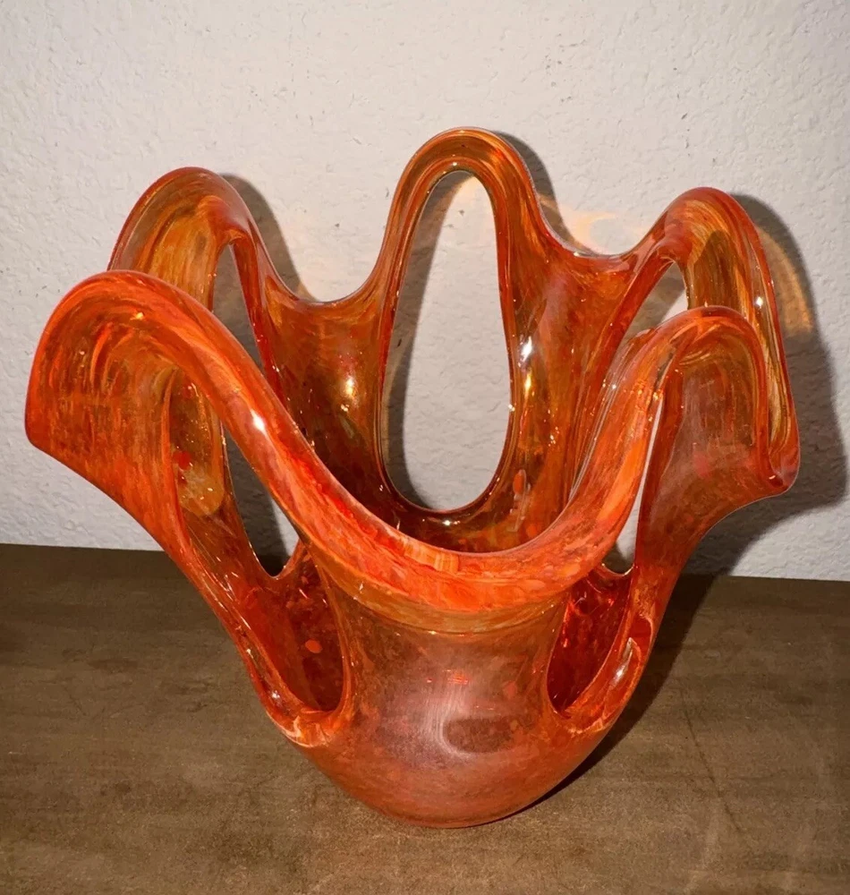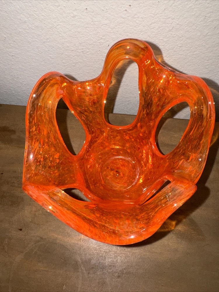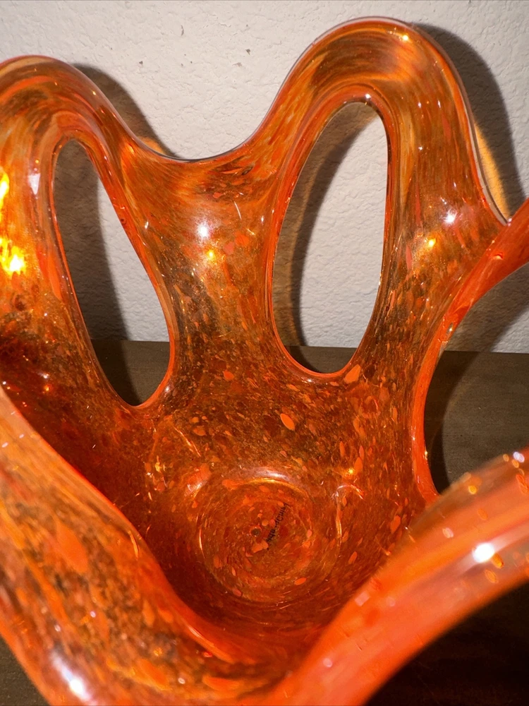 Art Glass Orange Specked Pull - Up with Holes Glass Vase Mid-century Abstract