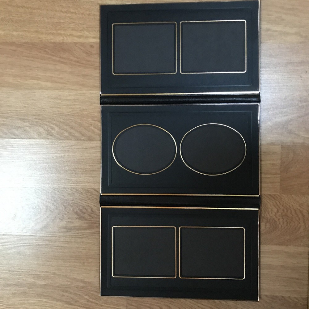 Art Leather Premium Black Photo Album with Gold Trim Holds 6 Photos New
