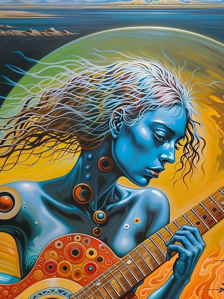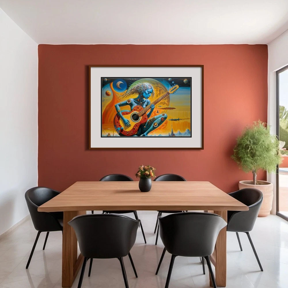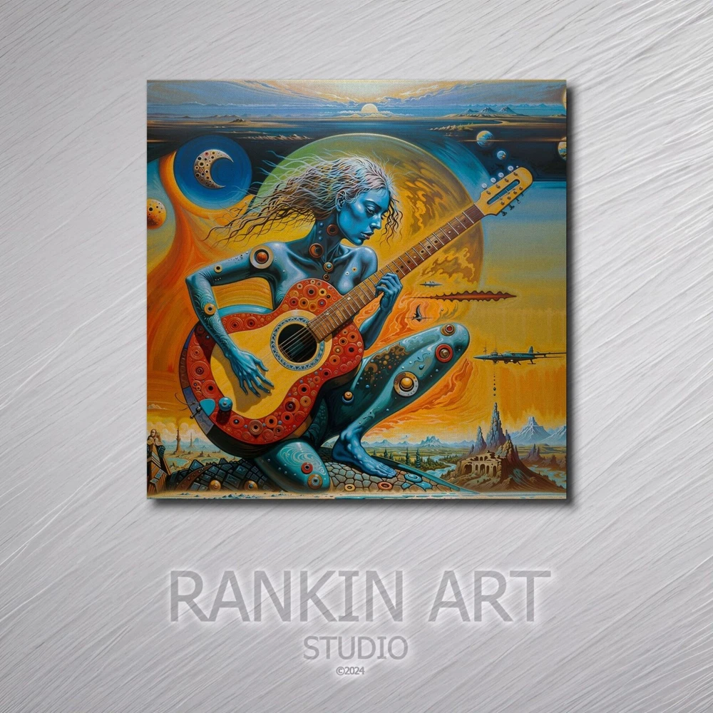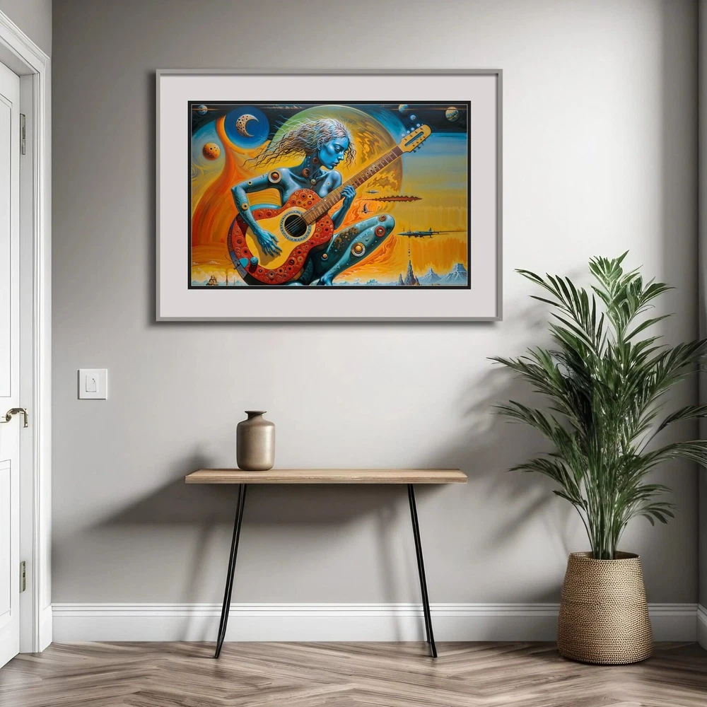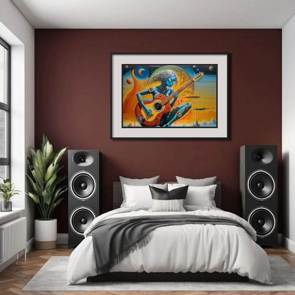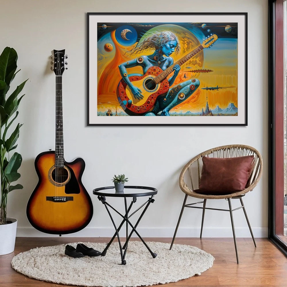 Transform your space with this stunning surreal abstract art print featuring a woman playing a guitar. The vibrant colors and intricate details make this piece a perfect addition to any art collection. Ideal for music lovers and those who appreciate unique, eye-catching artwork. Please note that this listing is for the print only; no frame is included. The vivid colors and exceptional detail are sure to make this art print a treasured item for years to come. Buy now and own this mesmerizing blend of music and fantasy art! Details: Condition: New Shipping: Rolled in a protective tube to ensure it arrives in perfect condition. Size Options: Available in multiple sizes (18x24, 24x36 inches) Print Type: Giclée print for vibrant colors and sharp details Frame: Unframed (frame not included) Material: High-quality matte paper Paper thickness: 10.3 mil Paper weight: 189 g/m² Opacity: 94% ISO brightness: 104% Shipping: Free shipping Worldwide! Please Note: This product is made especially for you as soon as you place an order, which is why it may take us a bit longer to deliver it to you. However, the estimated delivery times provided are the maximum expected duration. In most cases, items ship and arrive much sooner than anticipated. We strive to ensure a quick and efficient delivery for all our customers.