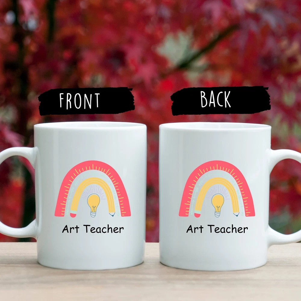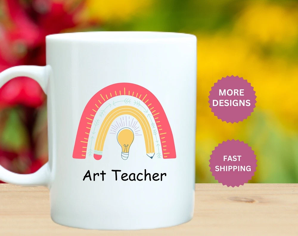 Art Teacher Mug Rainbow Art Teacher Gift Personalized Artist Mug Artist Gifts For Women Painter Mug Artist Coffee Mug Artist Cup Product Details.. This high quality 11oz. ceramic white mug has a premium hard coat that provides crisp and vibrant color reproduction sure to last for years. Perfect for all hot & cold beverages. The highest quality printing possible is used. It will never fade no matter how many times you wash it. Material: 100% Ceramic. Print both sides. Dishwasher and Microwave Safe. High Gloss + Premium White Finish. Printed in the U.S.A. Personalized & Custom. We support personalized and custom mug to add custom, when placing an order, you can add notes to the "order note" in shipping address section. Also you can contact us directly via message. Shipping Info. Ready to ship in 1 to 2 business days, All products are made-to-order and proudly printed in the United States. Shipped by USPS and DHL, You will receive your order in 5-7 days. Replace & Refund. All products are defective during shipping broken, chipped will be replaced free of charge. You are not satisfied with the product, we will refund 100% money to you. If any other issues arise, please do not hesitate to message, we would be more than happy to assist you.