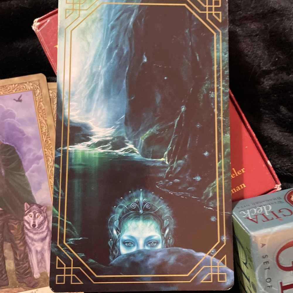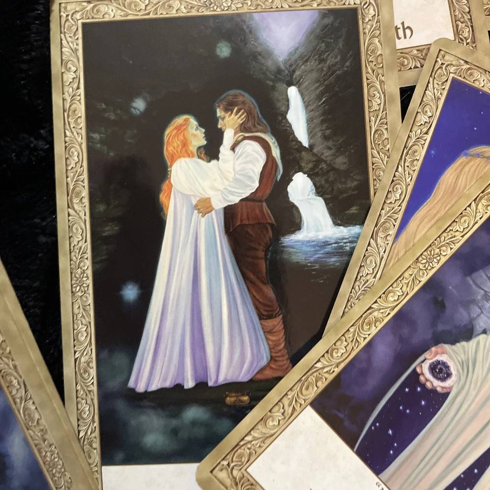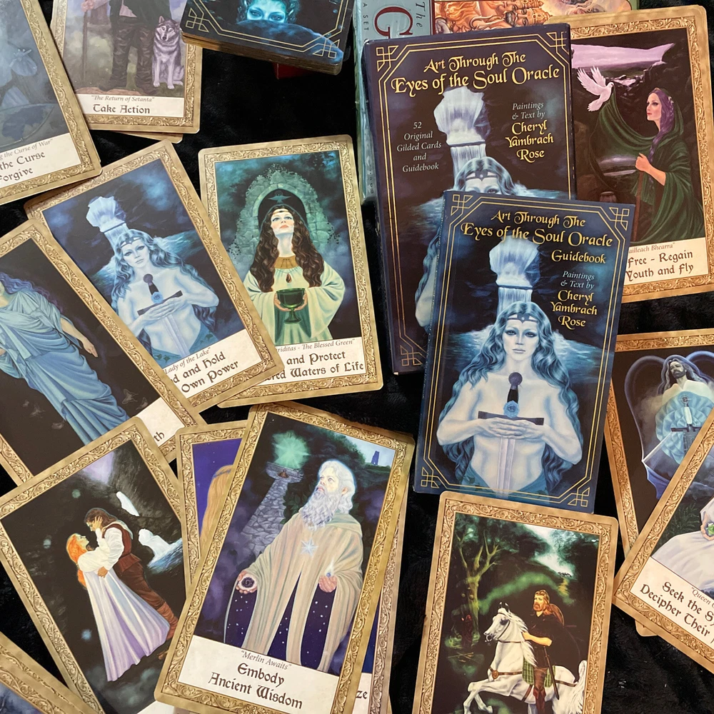 Art Through the Eyes of the Soul Oracle paintings text by Cheryl Yambrach Rose. I took many pics of the beautiful cards that are actual paintings gorgeous and unique cards. 52 cards with book in hard box all in excellent condition from tarot collection of medium Michelle Senjem