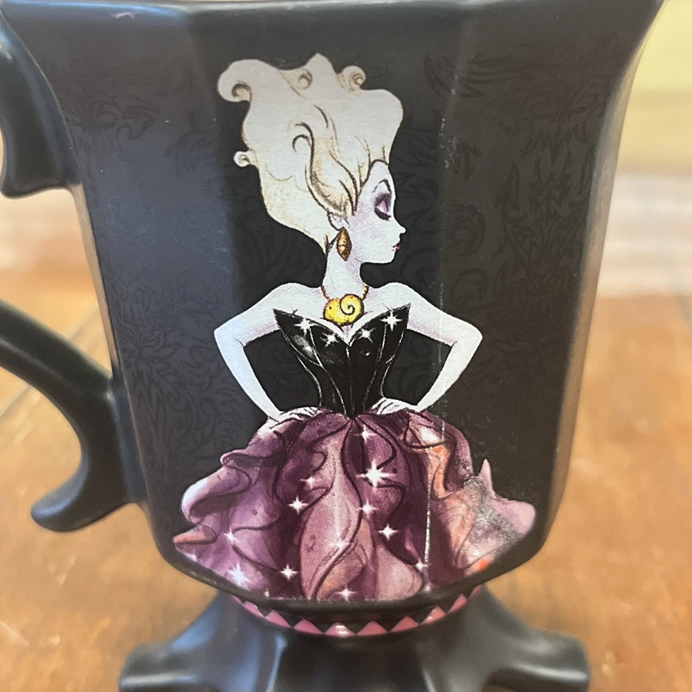 The Art of Disney Villains Design Collection Ursula Claw Footed Mug is a unique and collectible item from the Disney Store. Featuring the iconic character Ursula from The Little Mermaid, this mug is a must-have for any Disney fan or collector. Designed in 2012 in Thailand, this mug showcases the intricate details and villainy of Ursula, making it a special addition to any Disneyana collection. Perfect for enjoying a cup of tea or coffee while reminiscing about the beloved tale of Ariel and her undersea adventures.