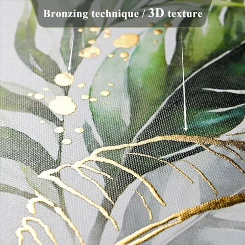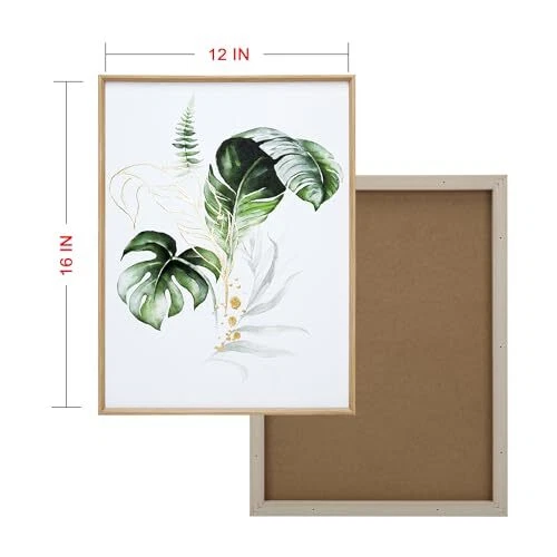 Original Design: The gilding canvas wall art with tropical leaf prints and gold lines is an original design from ArtbyHannah Sturdy Frames: PS frames, durable and lightweight High Quality: Giclee printing technology to keep the color vibrant and long last on the waterproof and durable canvas Applicable Space: The size of this canvas wall art is 12x16 inches (30x40cm) which provides a great room decor for your living room, bedroom, kitchen, dining room, etc Considerate Package: Well packed in a strong and properly-sized box that keeps the frame in good condition Easy-to-hang: A groove embedded in the frames on the backboard for easy hanging Customer Service: Please reach out to us whenever you need and we will be happy to help you with any problems