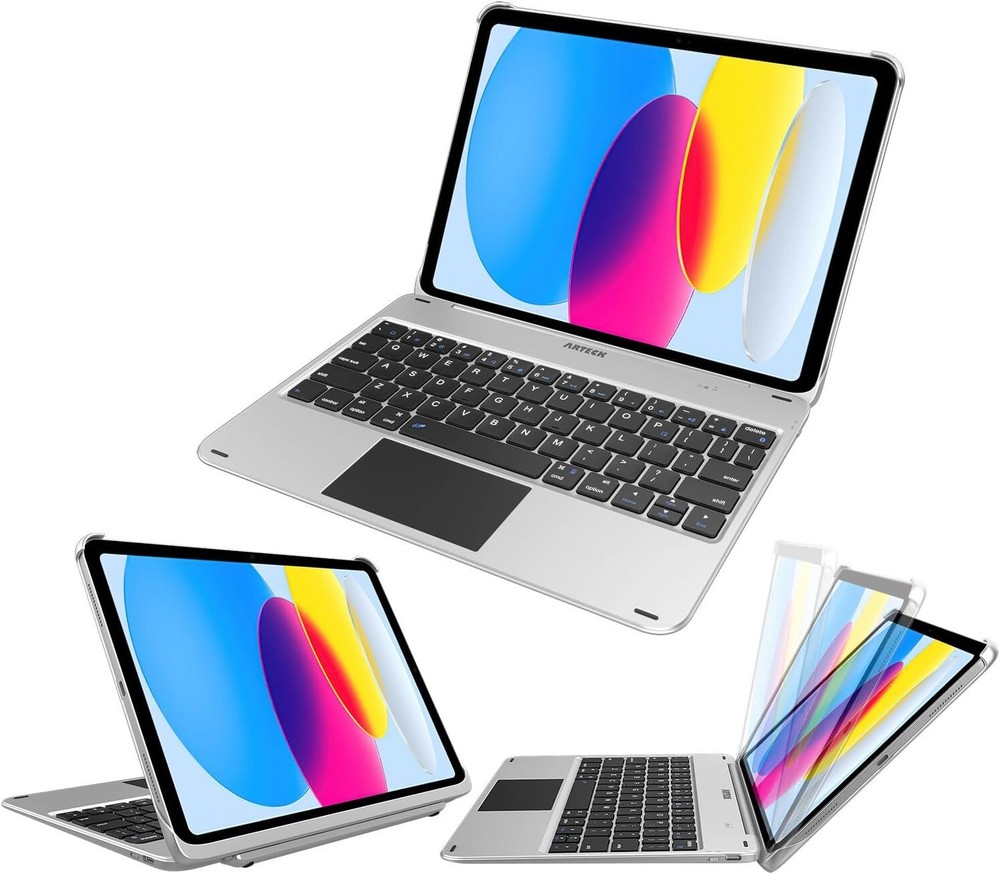 Keyboard Case with Trackpad, Arteck Bluetooth Keyboard with Folio Full Protection Case and Touch Pad for Apple 10.9-inch iPad 10 Generation (2022) with 130 Degree Swivel Rotating Product Details Package Dimensions: 10.51 x 8.9 x 0.87 inches Item Weight: 1.81 pounds Manufacturer: Arteck Batteries: 1 Lithium Ion batteries required. (included) Brand: Arteck Compatible Devices: iPad 10, iPad 10.9-inch Connectivity Technology: Bluetooth Keyboard Description: Wireless Recommended Uses For Product: Office Special Feature: Magnetic Protection Case, Integrated Stand, Trackpad, Rechargeable Number of Keys: 78 Style: Modern Material: Acrylonitrile Butadiene Styrene Included Components: USB-C Charging Cable Keyboard & Trackpad: Standard Mac keyboard layout features larger key size for a more relaxed typing experience, connects wirelessly via Bluetooth with easy-connect process. The trackpad allows you to work with iPad in a new way. Keyboard & Full Protection Case: Magnetic attaching style makes the case attach to the keyboard very easy and convenient. Switch between the iPad case style and laptop style with a simply magnetic attaching. iPad 10 (10.9-inch, 2022) Compatible: The keyboard cover includes the auto sleep/wake feature activated by opening and closing the case, suitable for Apple 10.9-inch iPad 10th Generation (2022), A2696, A2757. This keyboard is not suitable for iPad 9th Generation, any iPad Air or iPad Pro. Rechargeable: Charge up in 2 hours and enjoy 100 hours of uninterrupted use. Arteck 10.9-inch iPad 10 (2022), A2696 A2757 Bluetooth Keyboard Case with Trackpad: This keyboard is specially made for the Apple 10.9-inch iPad 10 (2022) (A2696, A2757) and perfectly complements its thin, lightweight design style. A Mini Laptop with Hardware Keyboard and Touch Pad: This Bluetooth keyboard also doubles as a screen protector and viewing case. Simply push the iPad into the unique iPad case and let the powerful magnets grip the iPad securely to instantly give your iPad a keyboard with touch pad and a protective cover that also acts as a multi-angle stand for easy viewing and typing. Looks just like a laptop! Easy-type Keyboard: Using a standard Mac format keyboard layout, the larger keys give you a familiar and comfortable typing experience and saves screen space - view content while you type without the on-screen keyboard getting in the way. Conveniently Secure: Built-in case and magnetic attachment allow the iPad be tilted up to 130 degree to provide the most comfortable viewing position for typing or viewing photos and movies. Auto Wake and Sleep Besides activating the iPad's Auto sleep-wake function to instantly wake your iPad when you open the cover and send it to sleep mode when you close it. The keyboard will enter its own sleep mode after a few minutes of inactivity - simply press any key to wake the keyboard up again. Premium Looks: The super-slim, lightweight design perfectly complements the elegantly sophisticated design style of the iPad. The thin and lightweight materials won't detract from the iPad's stunning looks but still offers durable protection for your iPad. Arteck 24 Months Customer Care: At Arteck, we believe in our products. That's why we back them all with a 24-month customer care and please contact the email on the product if needed.
