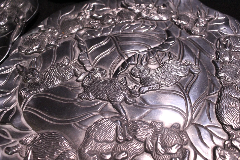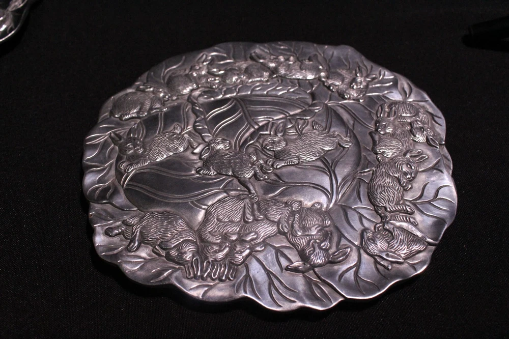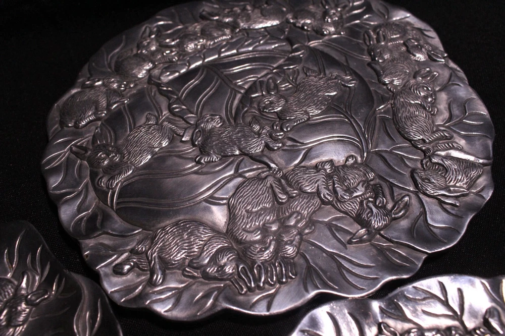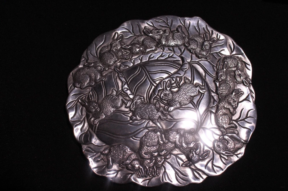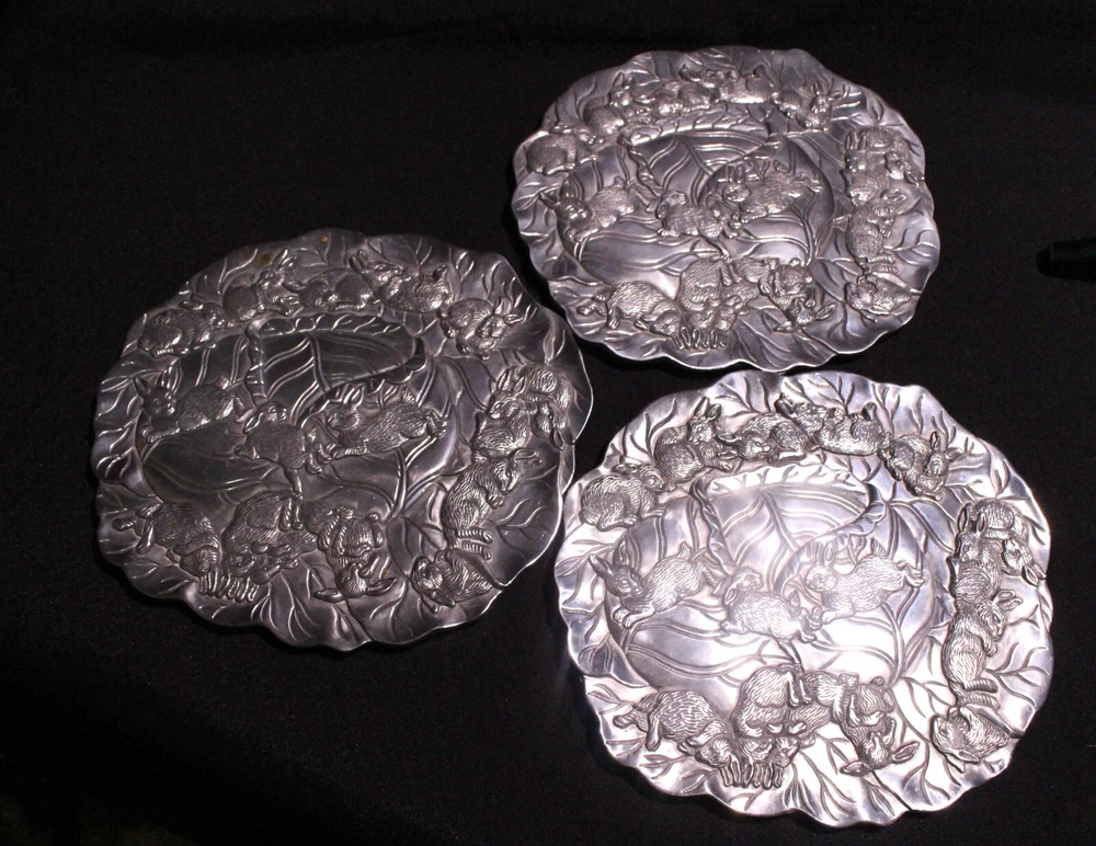 Add a touch of vintage charm to your kitchen with this set of three Arthur Court Bunny Rabbit Trivet Hot Plates. These hanging hot plates are made of durable aluminum and feature a cute design of Bunny Rabbits. Perfect for collectors or those who appreciate unique kitchen decor. Ideal for those who love metalware and collectibles.