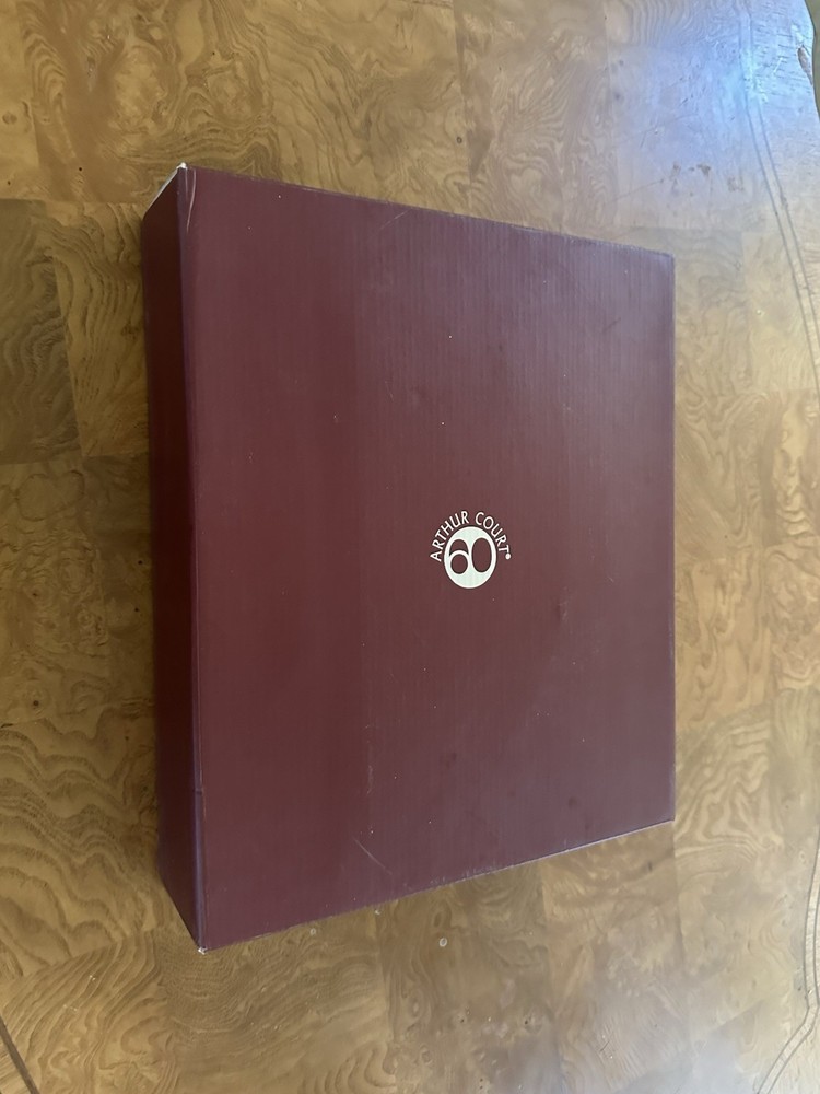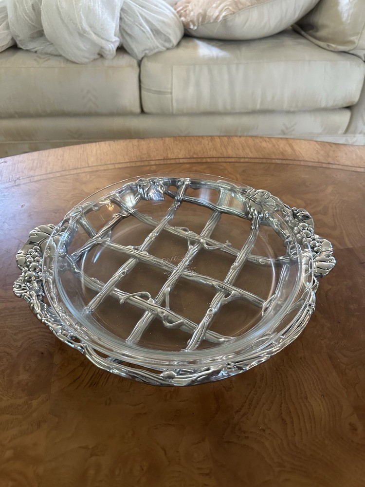 The Arthur Court 1999 Vintage Aluminum Grapevine Casserole Dish Holder is a stylish and practical addition to any kitchen or dining area. Made of high-quality aluminum with a beautiful grapevine design, this 10" dish holder is perfect for serving a variety of dishes. The retro design and vintage feel make it a unique collectible piece for those who appreciate classic craftsmanship and timeless style.