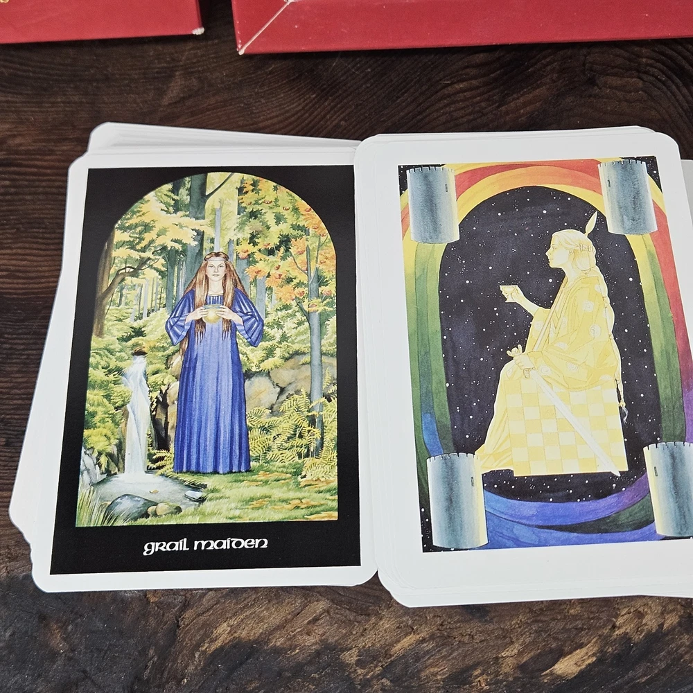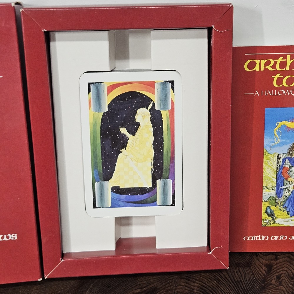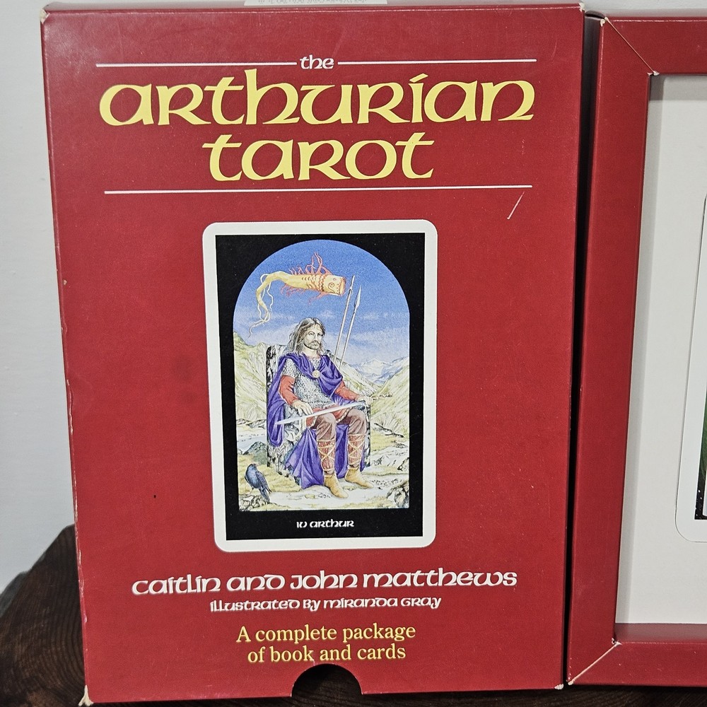 The Arthurian Tarot – A Complete Set Created by Caitlin and John Matthews and beautifully illustrated by Miranda Gray, this full tarot package immerses readers in the myth and magic of King Arthur’s realm. 🔸 Includes: Full 78-card tarot deck (complete and clean) “The Arthurian Tarot: A Hallowquest Handbook” – a detailed guide to each card’s meaning and use Original red box with inner tray 🔸 Condition: Cards are in excelent used condition with no bends, tears, or markings. Book is clean and intact. Box shows light shelf wear (see photos). 🔸 Features: Illustrated Major and Minor Arcana Rich Arthurian symbology Perfect for collectors, spiritual practitioners, or fans of Celtic/British myth