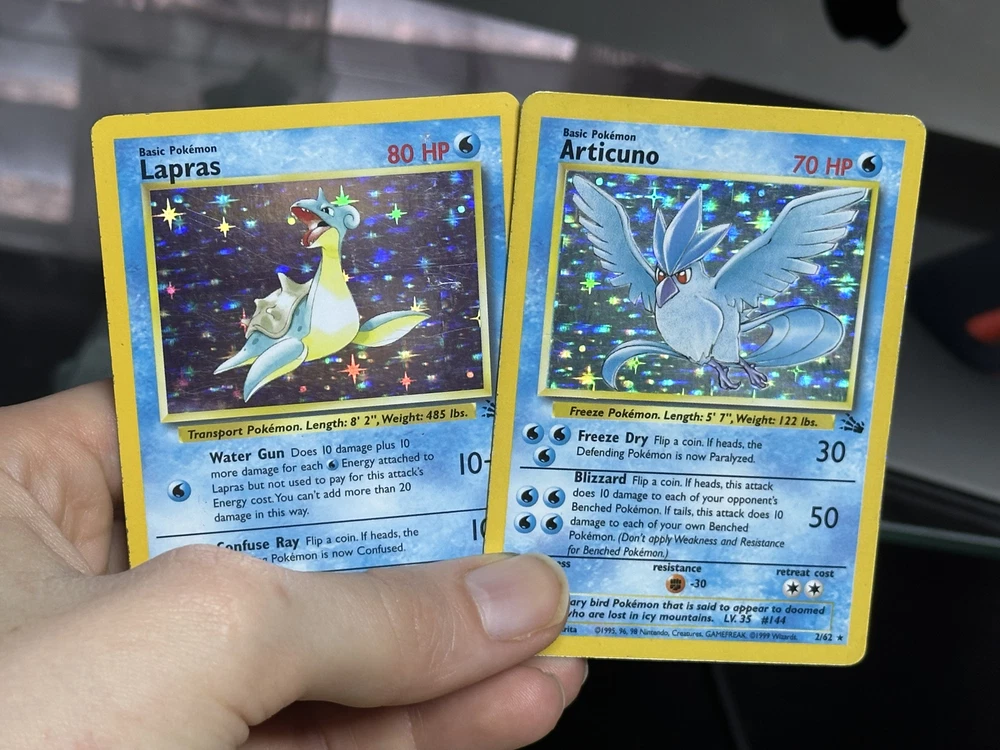 Articuno 2/62 Lapras 10/62 Fossil 1999 Holo Rare Vintage Pokemon Card Lot WOTC