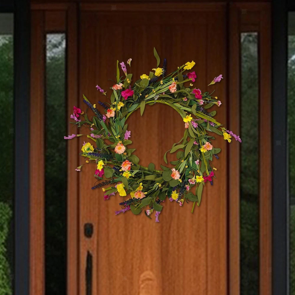 This artificial flower wreath is absolutely stunning! The vibrant daisies and lush green leaves look so real, instantly brightening up my front door. The silk and PP materials feel high-quality, and it’s held up perfectly against wind and rain. Love how it adds a fresh, springtime vibe all year round—super easy to hang and stays beautiful with no maintenance. Highly recommend for anyone wanting a cheerful, hassle-free decoration!