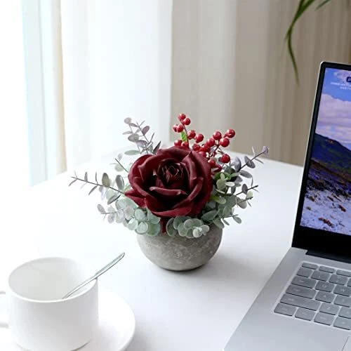 30 Days Return Policy Fast Delivery Trusted seller Artificial Flowers Kit with Pot, Combination of Fake Silk Burgundy Red Roses and Greenery,Small Plant Potted Decor for Offices,Bookshelf,Bedroom, Living Room,Party,Wedding Decorations… Product Description SIZE & PACKING - Our faux flower plant potted is 6 inches tall, The pulp made pot is 3.5 inches in diameter, A combination of 1 large flower, Green leaves, Berries. Mini size can be placed anyw for you want beautiful. ROMANTIC DECORATIVE - Artificial plastic flower floral create romantic beauty, Suitable for Indoor and outdoor,Home decor,Coffee decor,Dask,Farmhouse,Dining room,Fireplace,Centerpiece Table,Craft accessories,Tea party,Bride wedding reception,Ceremony outside and celebration of life decorations. ALWAYS FULL OF ENERGY - Artificial flowers are UV-resistant, Do not need watering and maintenance, Always bring you vitality and a good mood. NICE GIFTS - Babys Breath Artificial Flowers,Made of eco-friendly materials and odorless ,Nearly natural, Perfect for-flowers for delivery prime, Gifts for mama. GUARANTEE - We always check all products before shipping and We promise to provide money back and free exchange to all customers. Shipping Returns Payment Shipping Shipping is FREE to all addresses other than APO/PO boxes in the lower 48 states. All our stock ships from US-based warehouses. Shipped via USPS or UPS (depending on location and package weight) Unless stated otherwise, all orders will ship within 24-72 hours of your payment being processed. Check our feedback to see the great reviews of FAST shipping we offer. Returns As our valued customer, we will do our best to make sure the product you receive arrives to you on time and as expected. If you are not satisfied with your purchase, please contact us within 30 days of receiving your order to process a return. Payment We currently accept payment via eBay managed payments only. Once payment is cleared, we will dispatch your shipment within 1-3 business days. Please refer to the "Shipping" tab for more information regarding shipping speed to your destination.