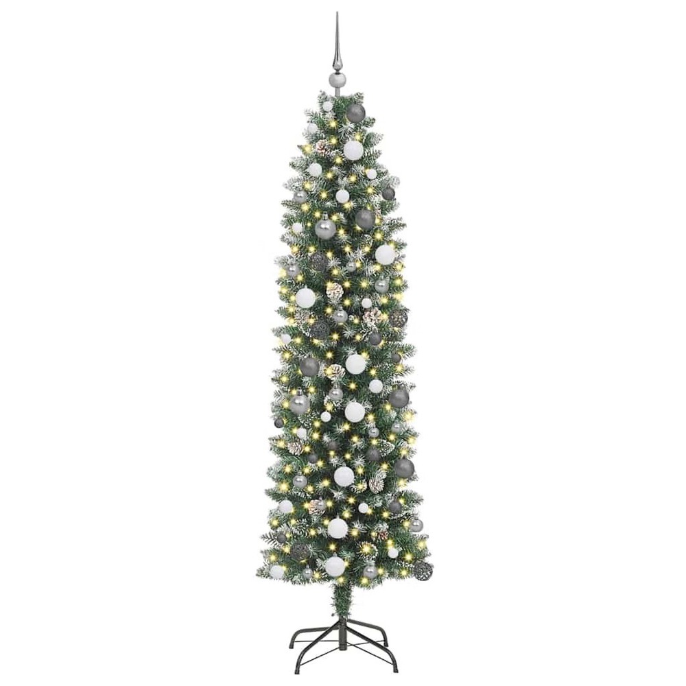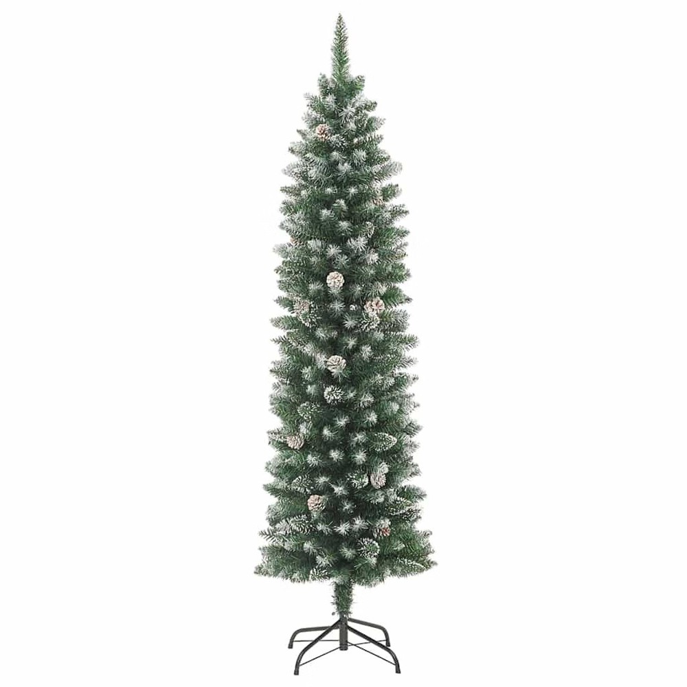 Gender: Unisex Size: 82.68 in Perfect for anyone who wants a stylish yet compact holiday decoration, the Artificial Slim Christmas Tree mixes modern flair with seasonal charm. Its slim, cone-shaped profile makes it great for smaller living rooms or sheltered outdoor areas. The lifelike PVC tips and stunning warm white LED lights create a warm and inviting atmosphere during the holiday season. Lifelike Tips: The Artificial Slim Christmas Tree comes with carefully crafted PVC tips that look just like a real tree. These realistic tips ensure a full, lush look that can enhance any room. Made of high-quality materials that resist wear, this tree stays vibrant year after year, and the artificial design means no mess from falling needles. Versatile Lighting Options: With flexible LED strip lights, this tree has 8 dynamic flash modes for any occasion. From twinkling to steady, the warm white light creates a cozy festive glow. These lights amp up the holiday spirit while being energy-efficient and longer-lasting than traditional bulbs. Space-Saving Structure: This tree's slim, modern design fits seamlessly into tight spots without taking away from the festive vibes. The narrow structure is ideal for smaller apartments, offices, or hallways, maximizing space while still looking grand during the Christmas season. Eco-Conscious Power Supply: Powered through a USB connection, this tree helps lower your electricity usage compared to traditional plug-in trees. This setup makes it easy to place anywhere, letting you decorate without worrying about finding nearby outlets. Simple Assembly: Designed for easy setup, this tree needs minimal tools and effort. With the manufacturer's instructions, two people can quickly and smoothly put it together, so you can focus on decorating and celebrating. Color: Green and white Material: PVC and metal and plastic Tree height: 82.68 in Bottom diameter: 21.65 in Stand size: 17.72 in Lifelike Tips Number of PVC tips: 450 Number of pine cones: 20 Lights type: LED strip lights Lights color: Warm white Number of LEDS: 300 Distance between LEDS: 3.94 in LED flash modes: 8 Power source: USB Batteries Included: No Voltage: 5 V Indoor & outdoor: Indoor and sheltered outdoor use Assembly required: Yes Delivery-contains: 1 x Christmas tree 1 x Stand 1 x LED string light 1 x Peak 15.75 x 1.18 in ball 15.75 x 1.57 in ball 15.75 x 2.36 in ball