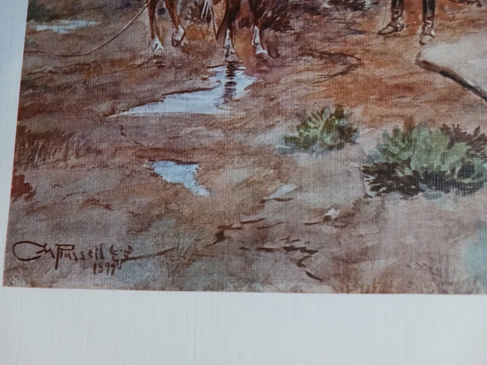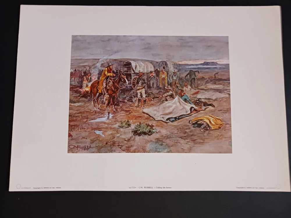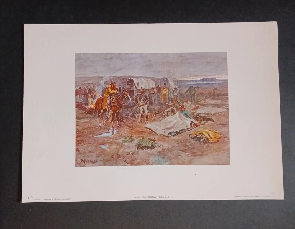 This Art Work Is From The Estate Of Hugh LaBere One Of The First Showroom Owners At The Denver Merchandise Mart C M Russell Calling The Horses Open Edition Print 14"x20" Is From Artist Charlie Russell This Was Just One Of The Many Lines My Step Dad Represented He Knew Many Of The Artists Personally And These Are From His Personal Collection That He Wanted To Open An Art Gallery With . My Stepdad Hugh Earned The Title" The Living Legend" You Are Much Missed! COWBOY UP, Love Your Daughter Sheila. Thank You For Looking ! Or Buying ! Print Size 13"3/4 H x 19"1/2 W Art Size 81/2 h x 113/4 w I Will Ship Flat