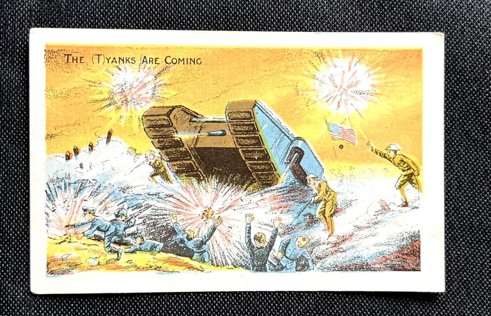 Artist Postcard WWI The (T)Yanks Are Coming Tank In Combat Action vs Germans A8