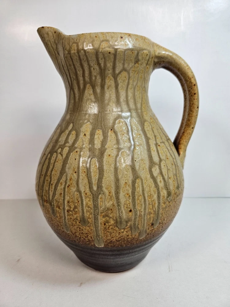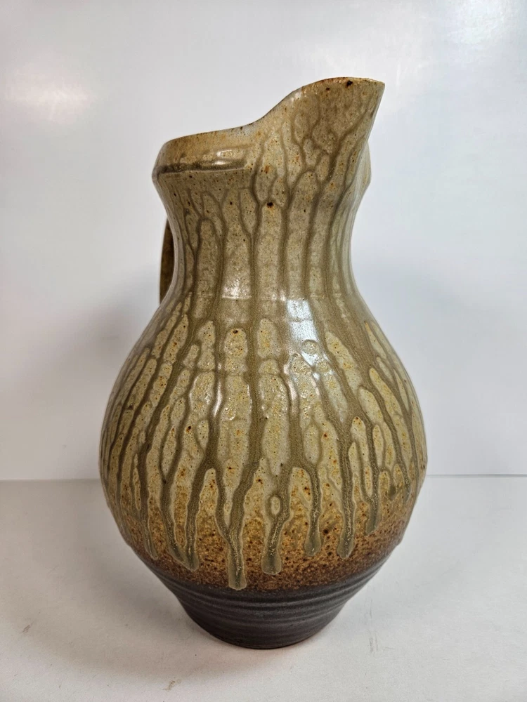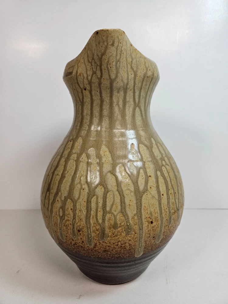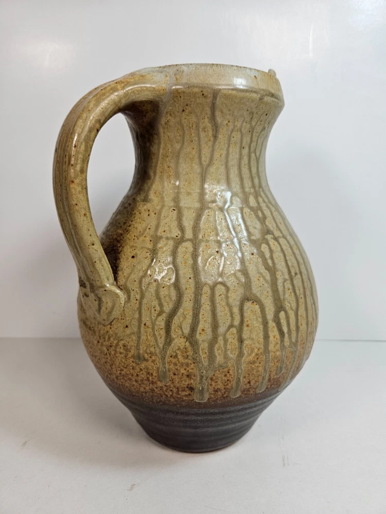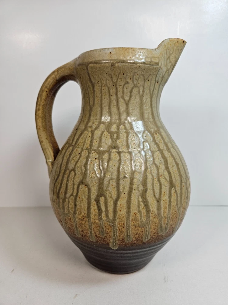 Artist Pottery Pitcher 10” Tan Drip Double Glaze Two Tone color that begins off white/tan, and ends with a dark earthen burgandy tone, providing a feel of stability. Excellent condition, no apparent wear or flaws. No signs of chips, cracks, crazing or repairs. Stands at 10 inches. about 6.5 inches across at widest point. Has a stamped T at base (See photos). I'm unsure as to who made this, but this pitcher looks similar to work by Brad Tucker. However, do not quote me on this. A beautiful functioning display piece. Pours well, feels good, looks comforting. Just a reminder: It’s that season when porch thefts start to pick up. Please follow tracking of your package to know when it’s arriving. If you can’t be there when it arrives either have a neighbor pick it up for you, or contact the post office and ask for it to be picked up there. I’m trying to help you have a Merry Christmas! See all photos. Thanks for stopping by!