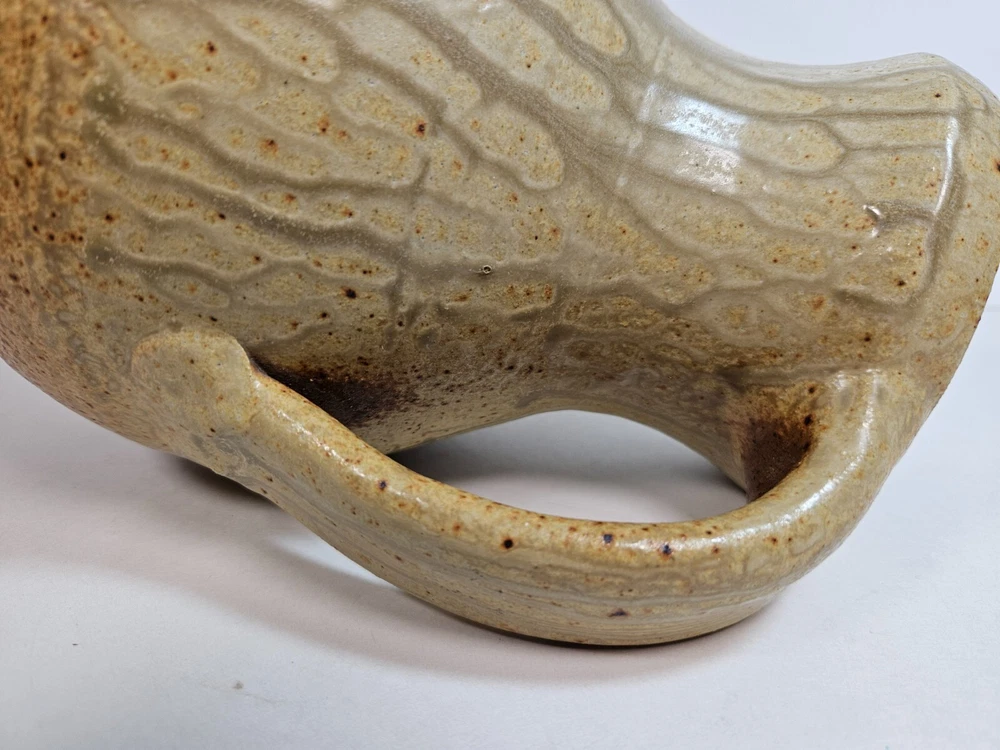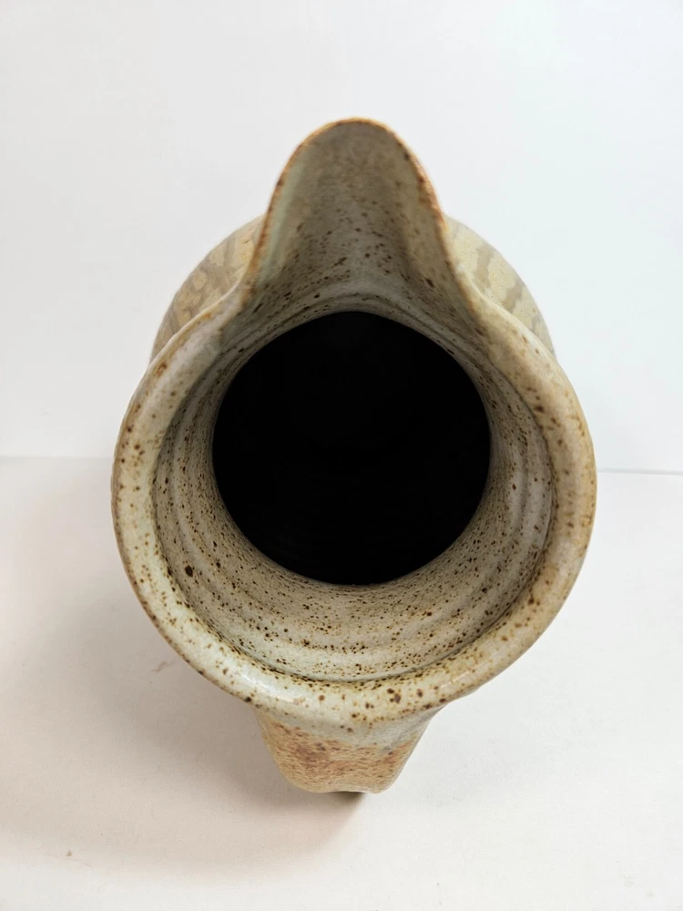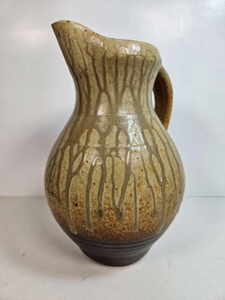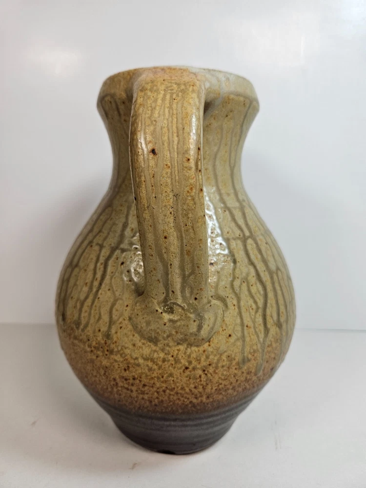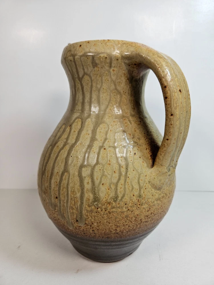 Artist Pottery Pitcher 10” Tan Drip Double Glaze Two Tone color that begins off white/tan, and ends with a dark earthen burgandy tone, providing a feel of stability. Excellent condition, no apparent wear or flaws. No signs of chips, cracks, crazing or repairs. Stands at 10 inches. about 6.5 inches across at widest point. Has a stamped T at base (See photos). I'm unsure as to who made this, but this pitcher looks similar to work by Brad Tucker. However, do not quote me on this. A beautiful functioning display piece. Pours well, feels good, looks comforting. Just a reminder: It’s that season when porch thefts start to pick up. Please follow tracking of your package to know when it’s arriving. If you can’t be there when it arrives either have a neighbor pick it up for you, or contact the post office and ask for it to be picked up there. I’m trying to help you have a Merry Christmas! See all photos. Thanks for stopping by!